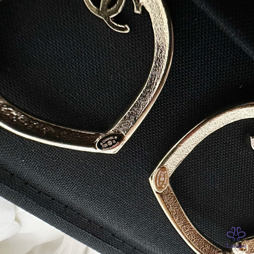Chanel 香奈兒 小香 金色 愛心????鏤空水鑽 雙C logo 夾式 耳環 全新✨