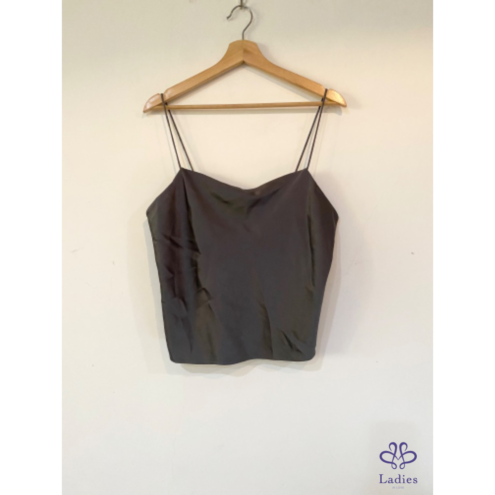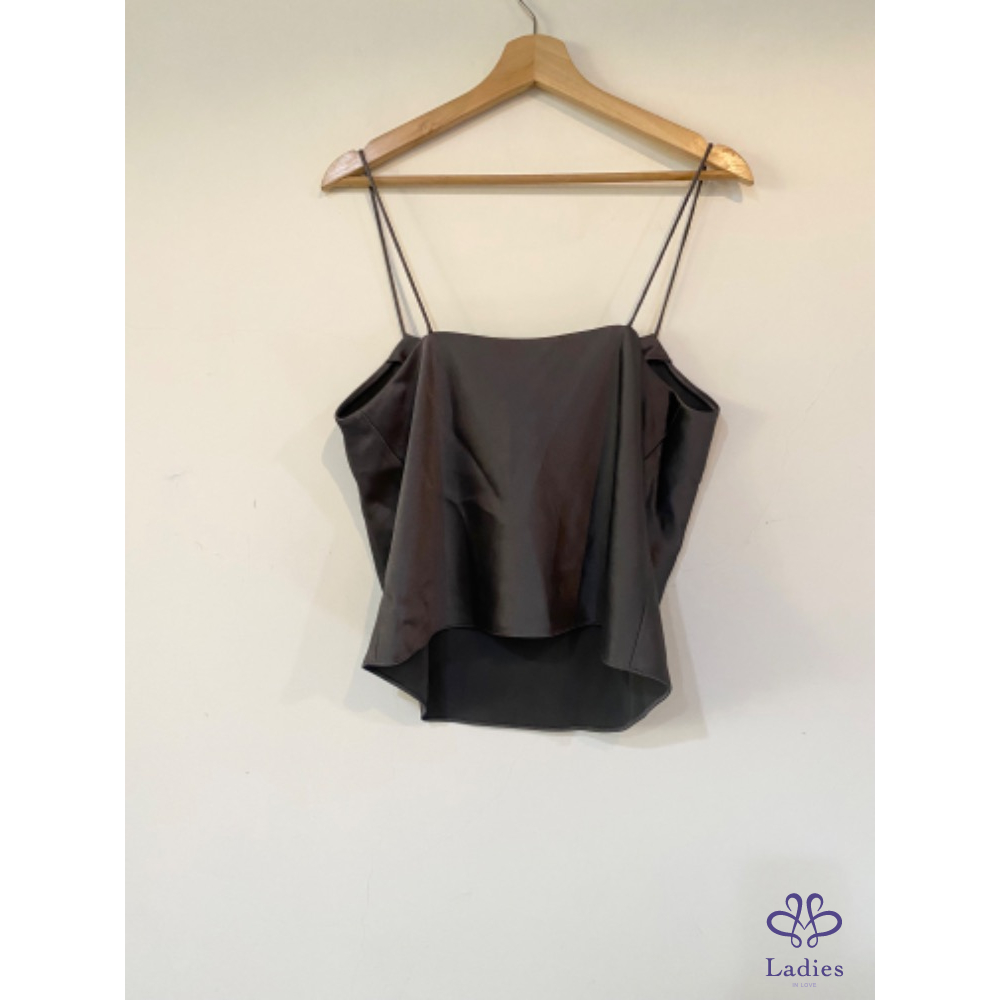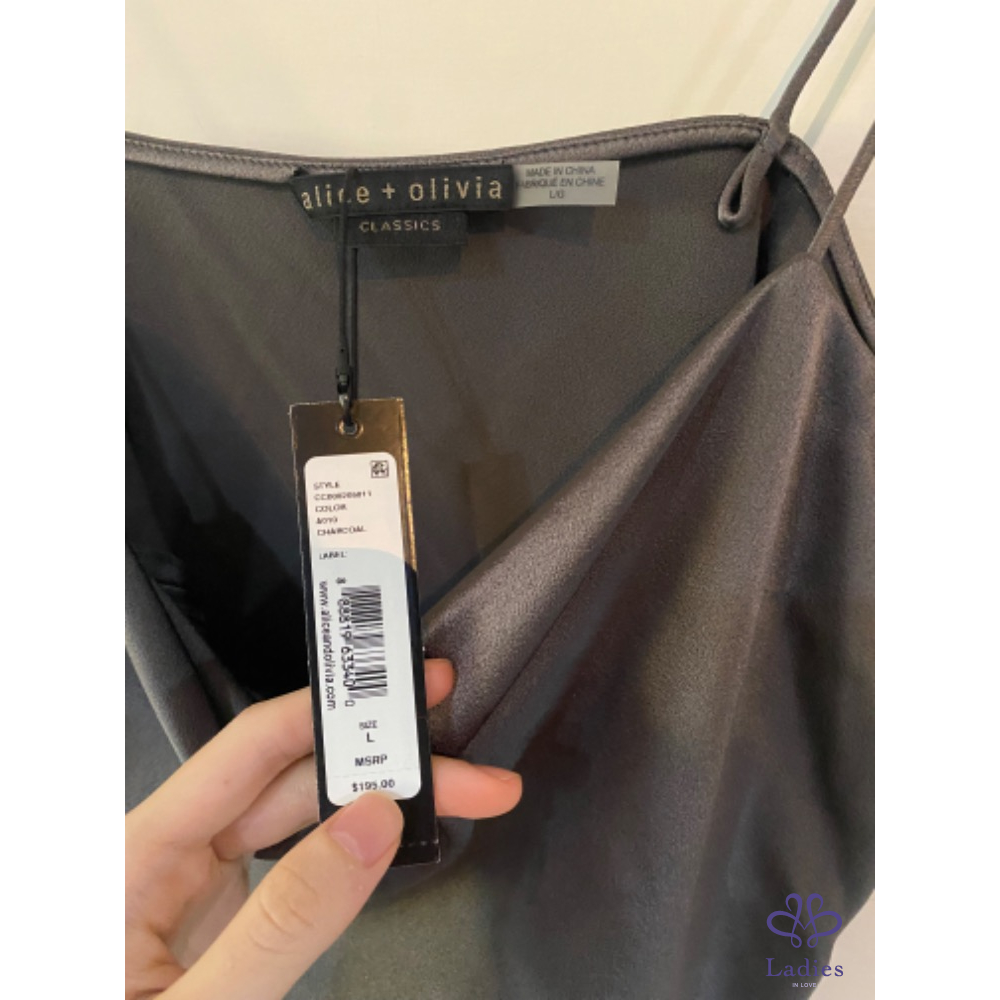 Alice + Olivia 光澤感灰銀真絲細肩帶上衣