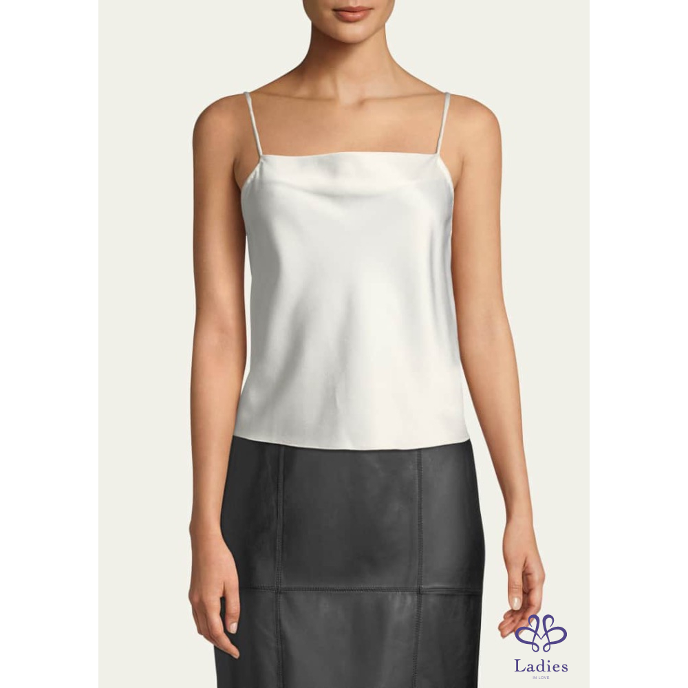 首頁 精品服飾 Alice + Olivia 光澤感灰銀真絲細肩帶上衣
