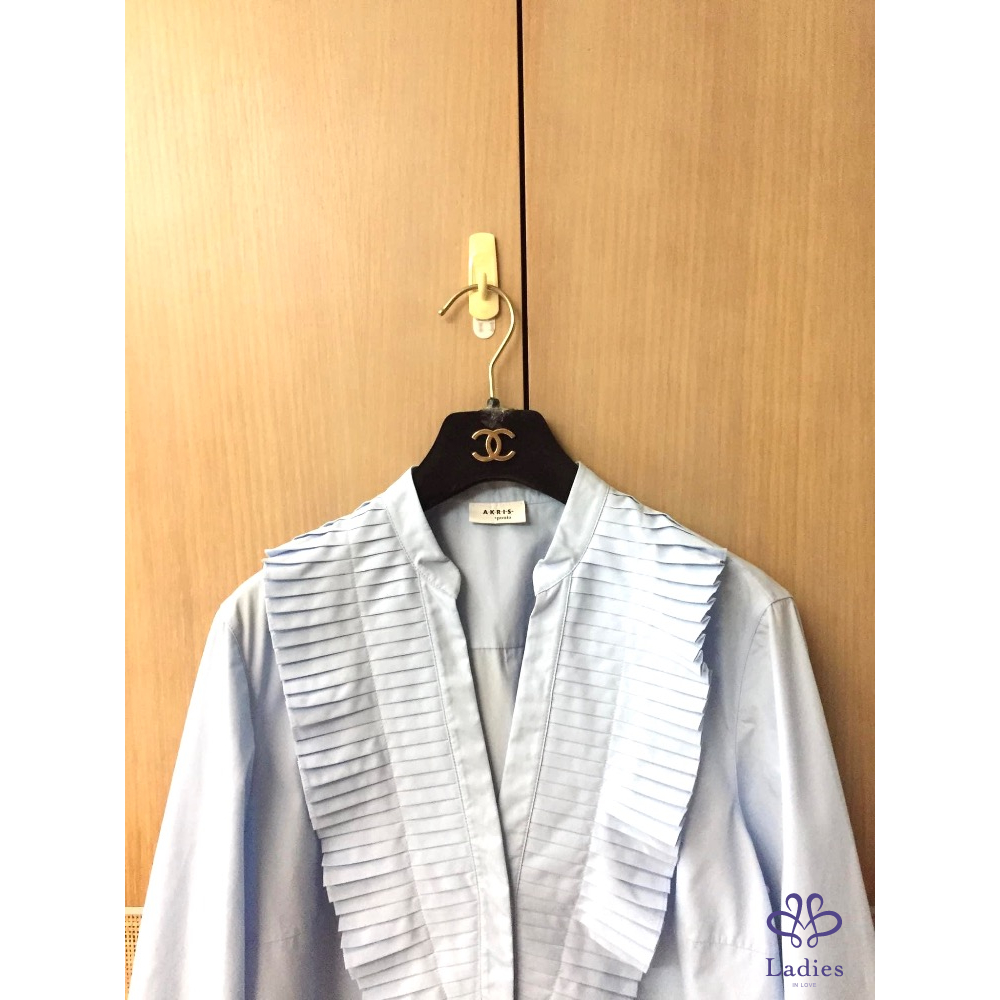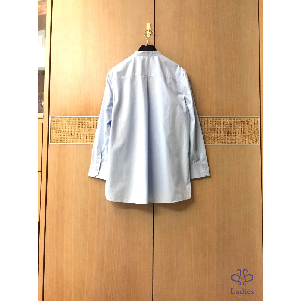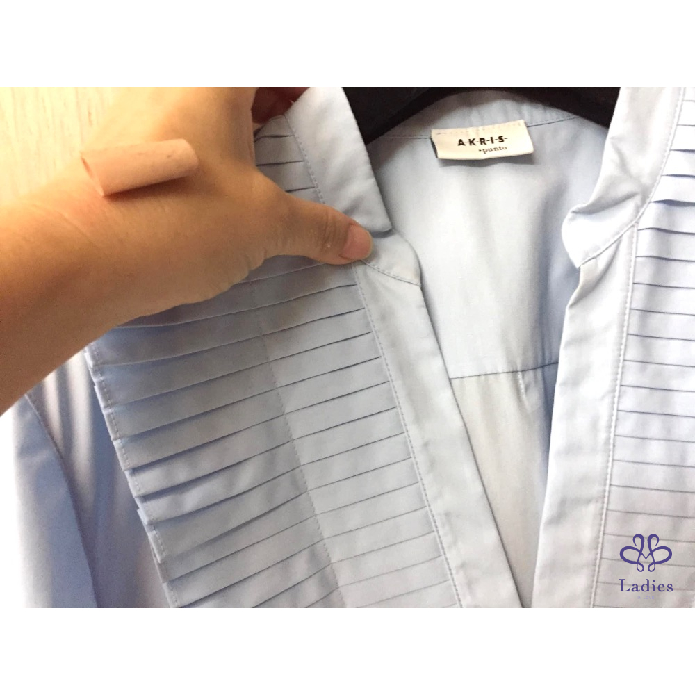 瑞士品牌A-K-R-I-S•pinto 藍色皺摺領襯衫購於國外購價約$12500穿過及次尺寸長73.5胸53肩41.5