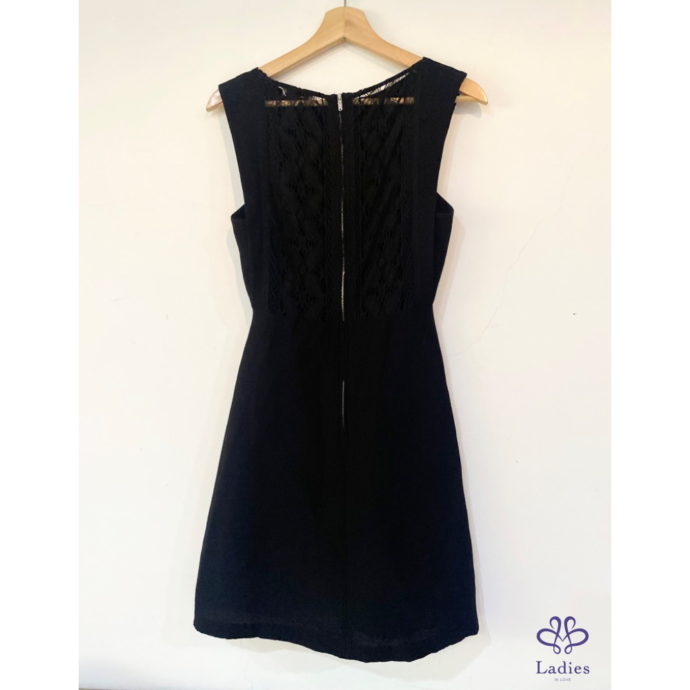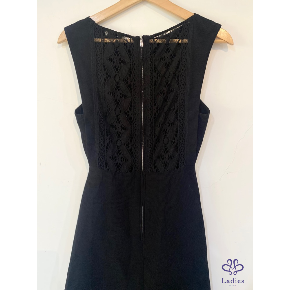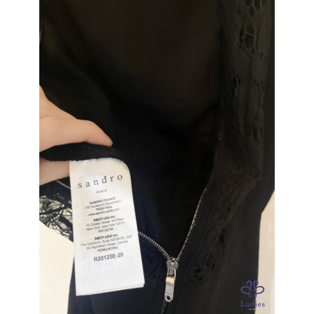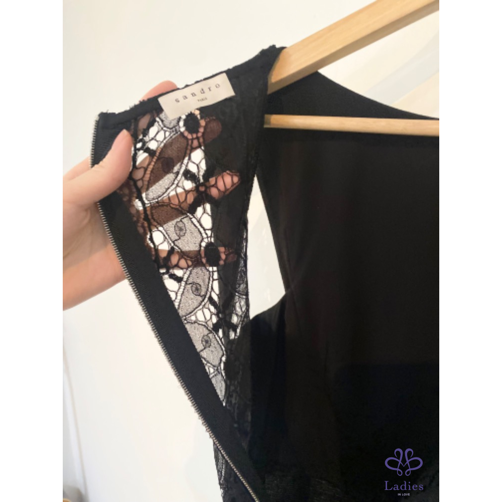 Sandro 黑色船型領網紗簍空蕾絲美背
