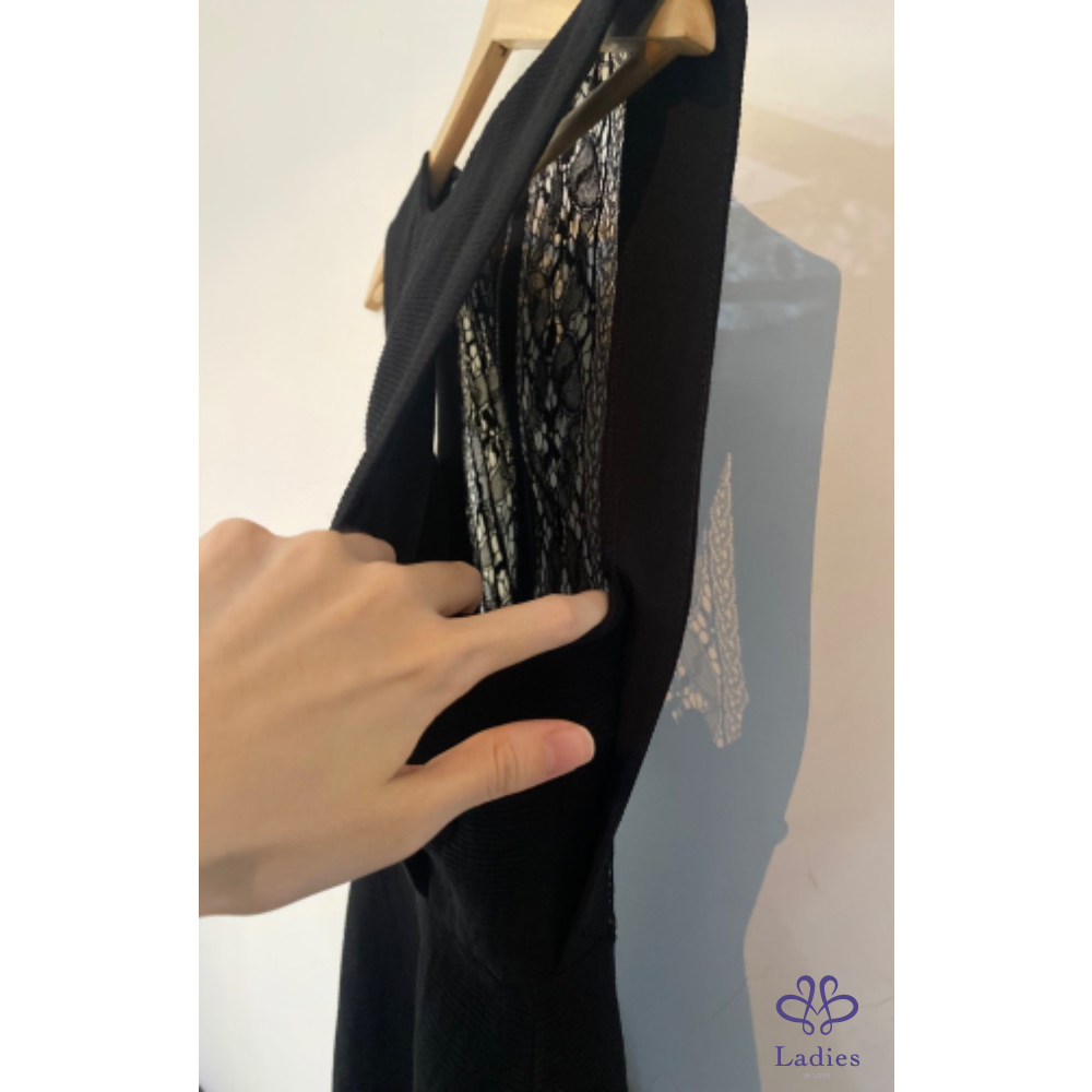 首頁 精品服飾 Sandro 黑色船型領網紗簍空蕾絲美背