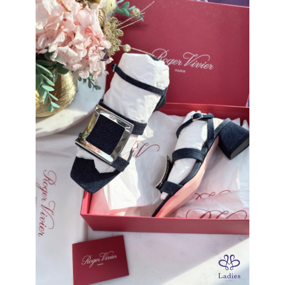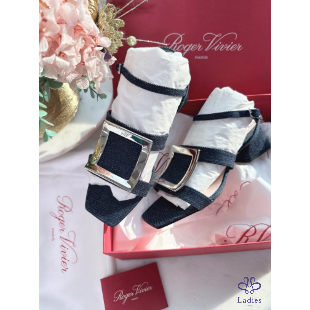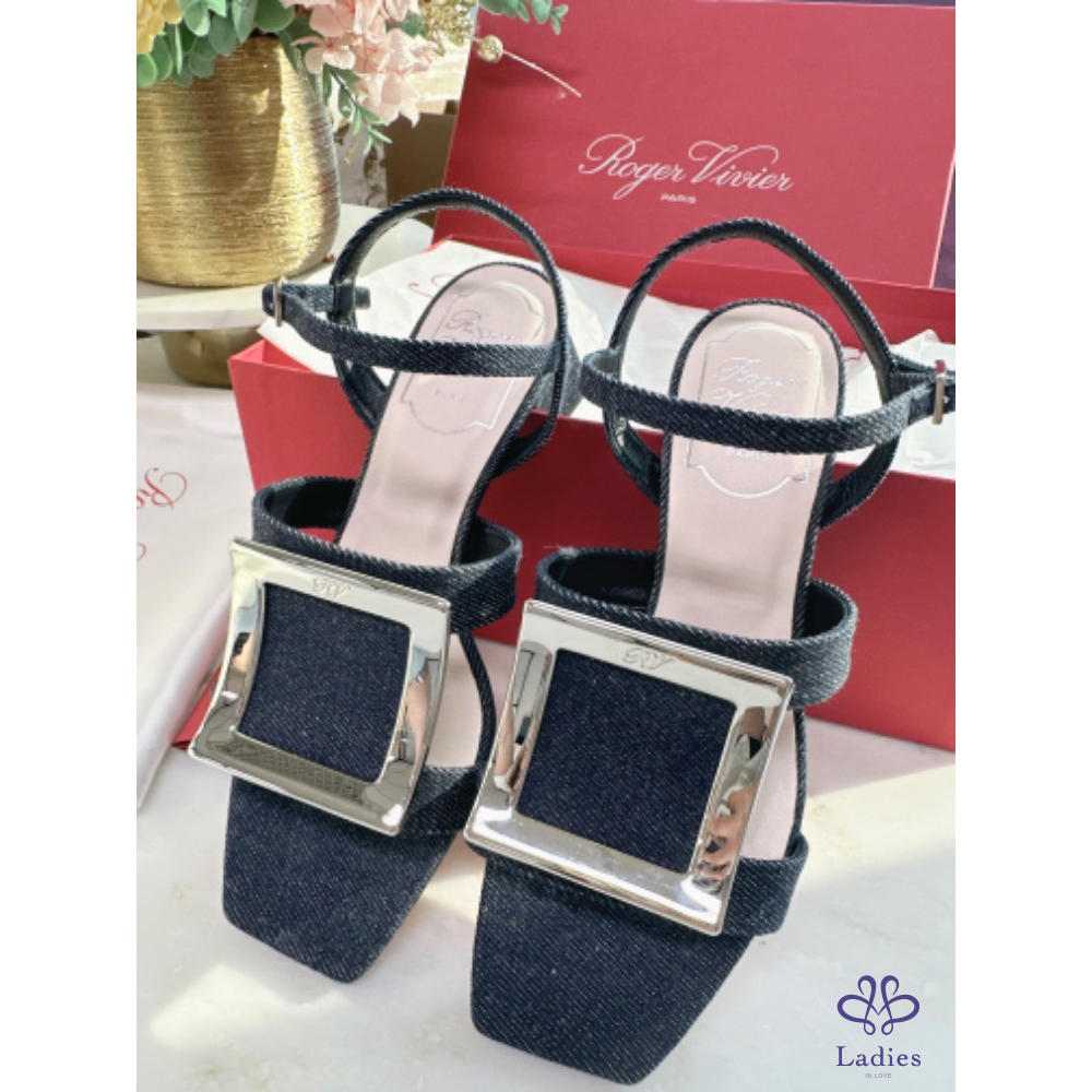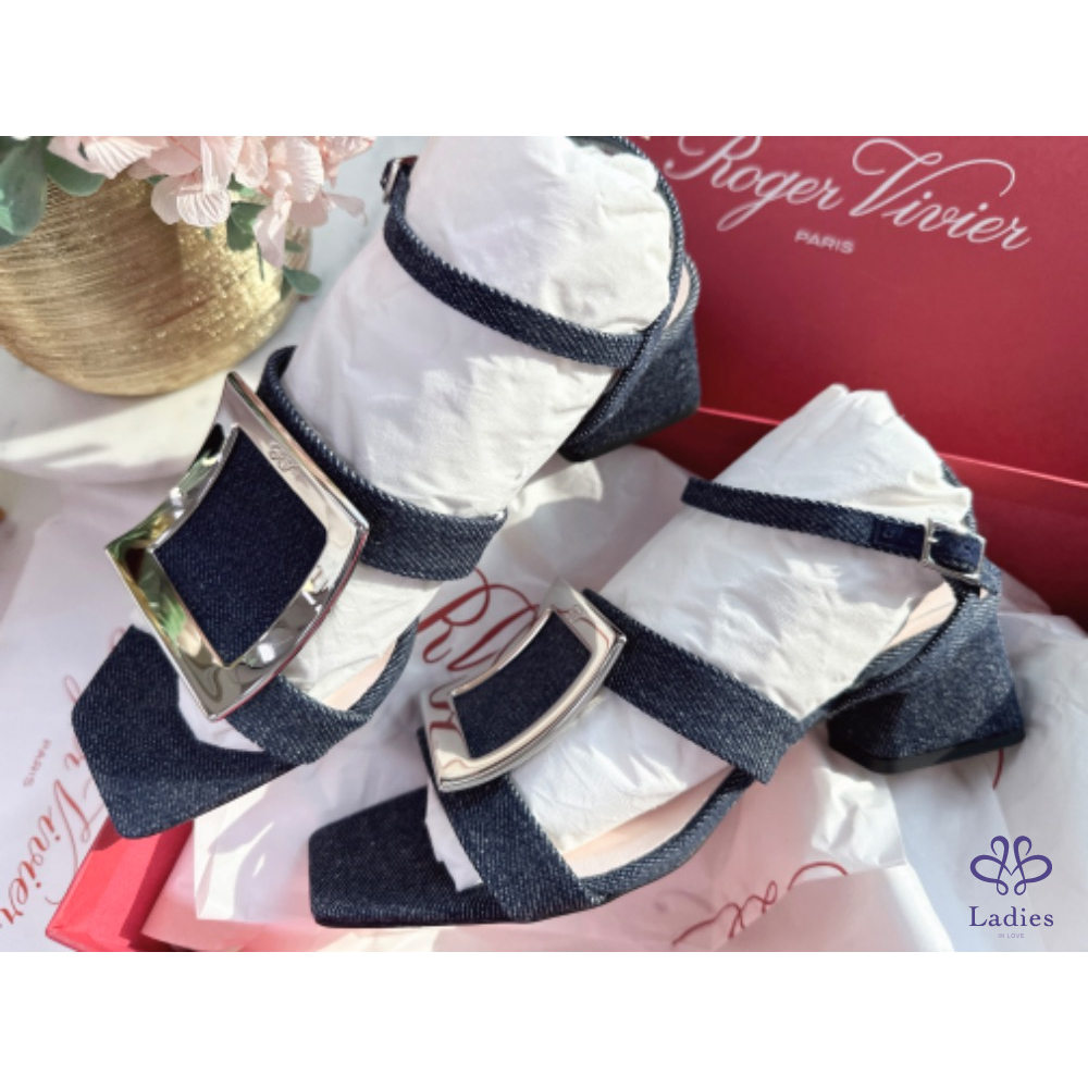 ✨Roger vivier 方鑽銀釦單寧涼鞋 34.5