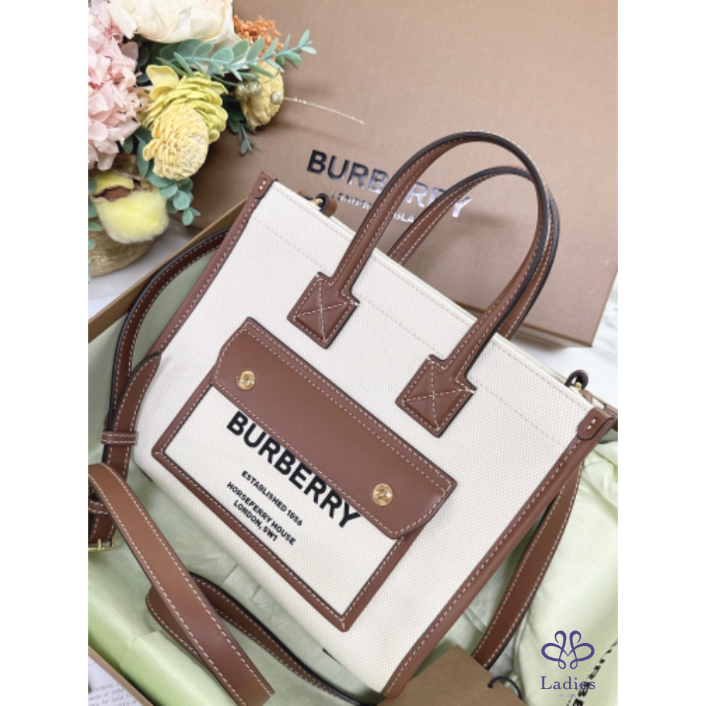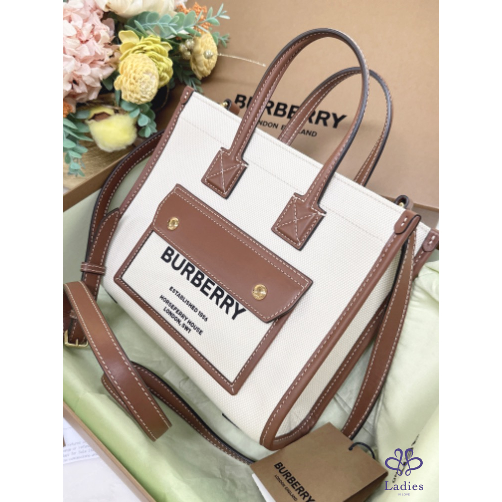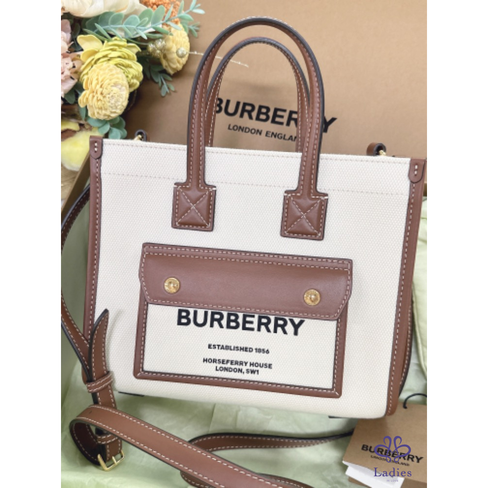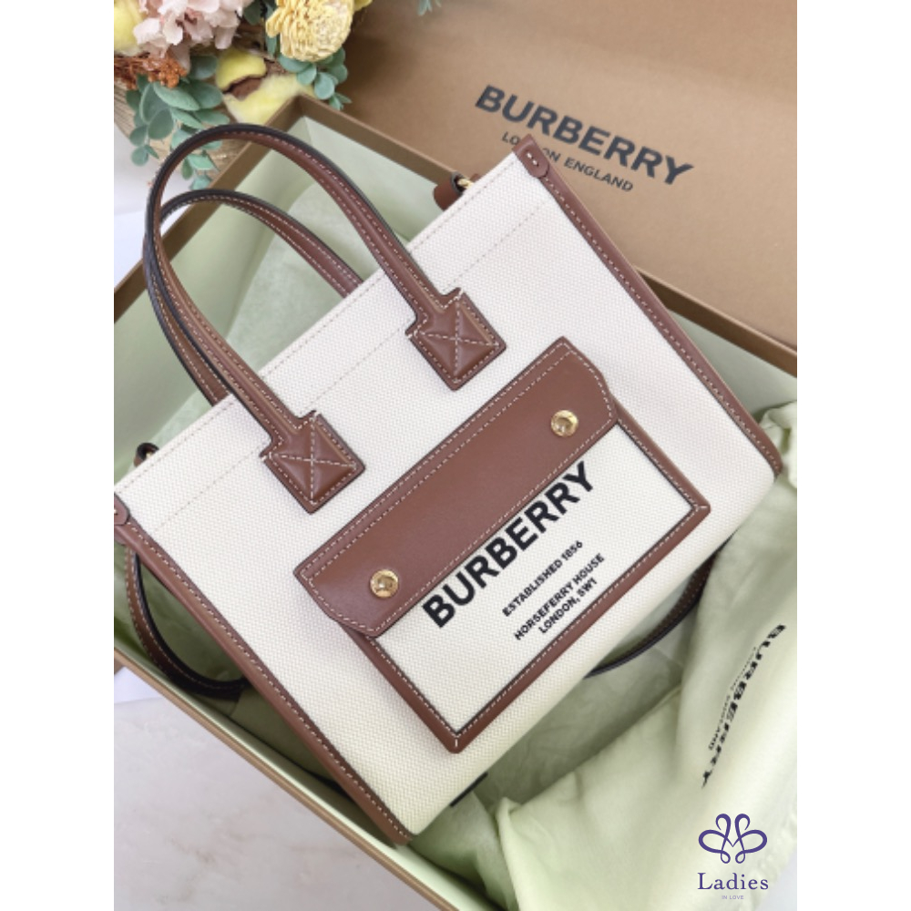 ✨Burberry Freya帆布字母小托特包 全新