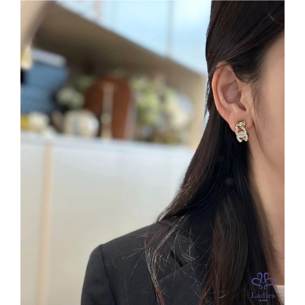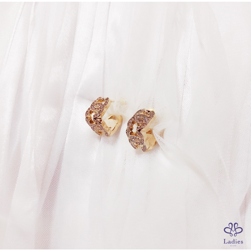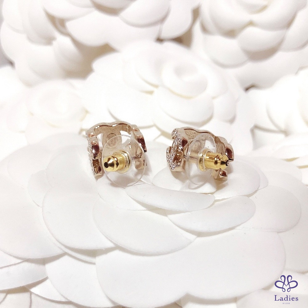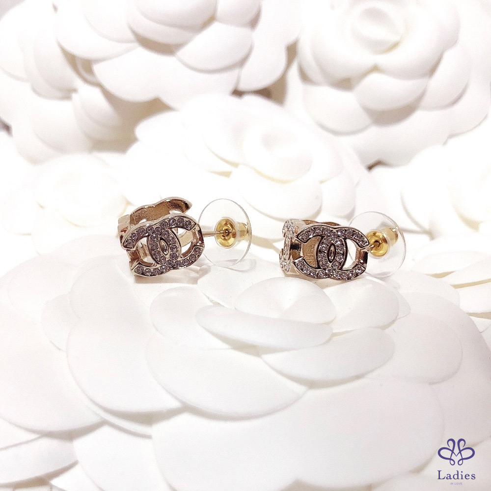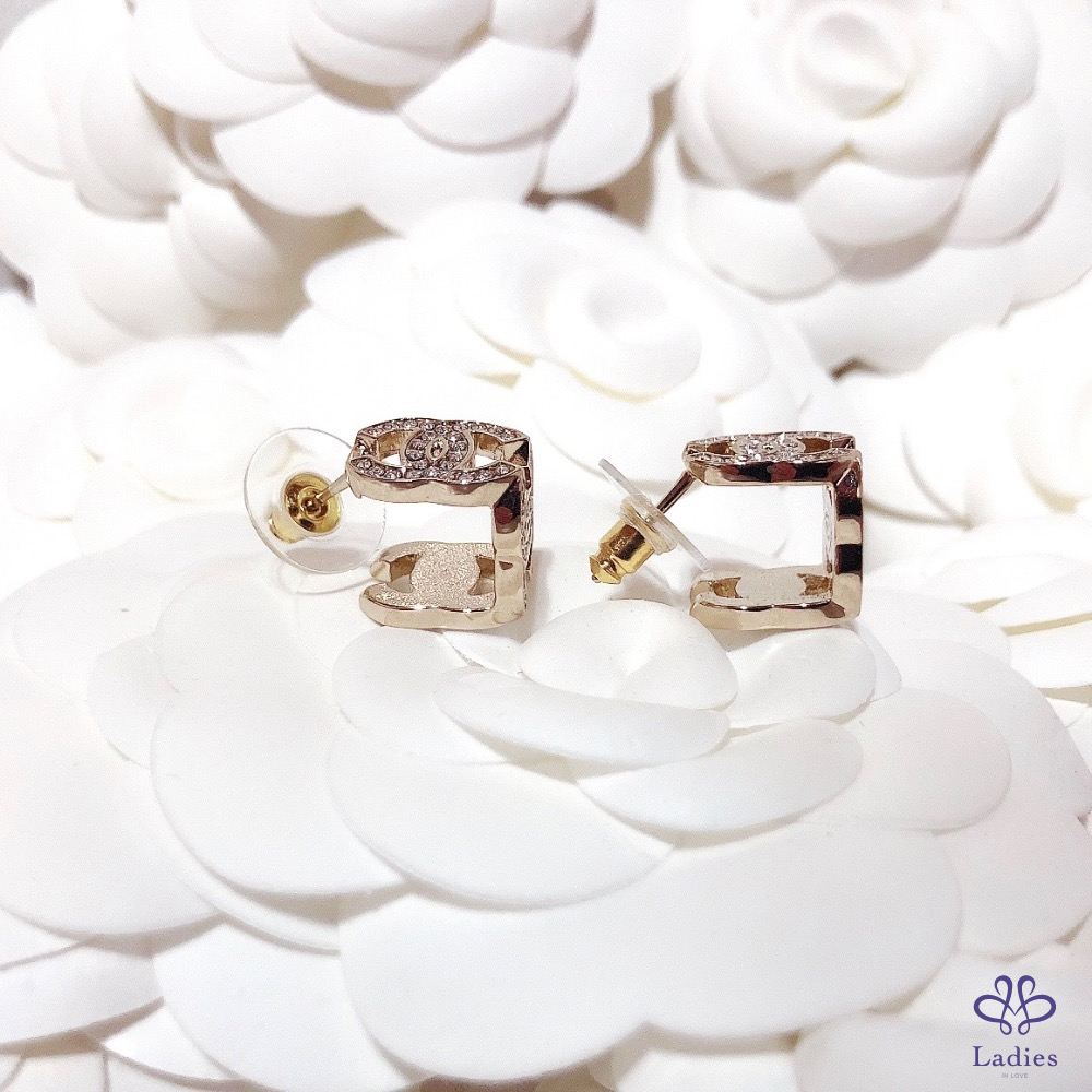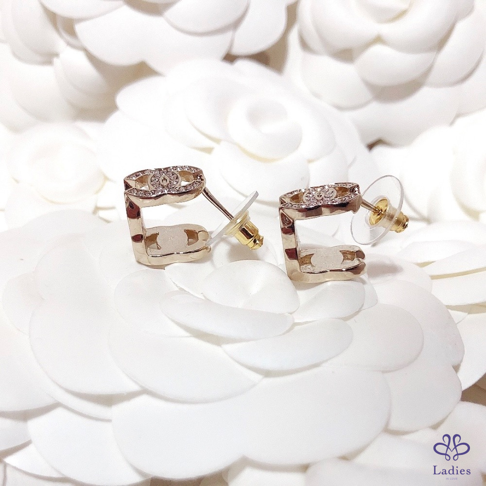 首頁 精品手錶 CHANEL 香奈兒 小香 23B 方形 鏤空 淡金 立體水鑽 logo 針式 穿式 耳環 全新✨
