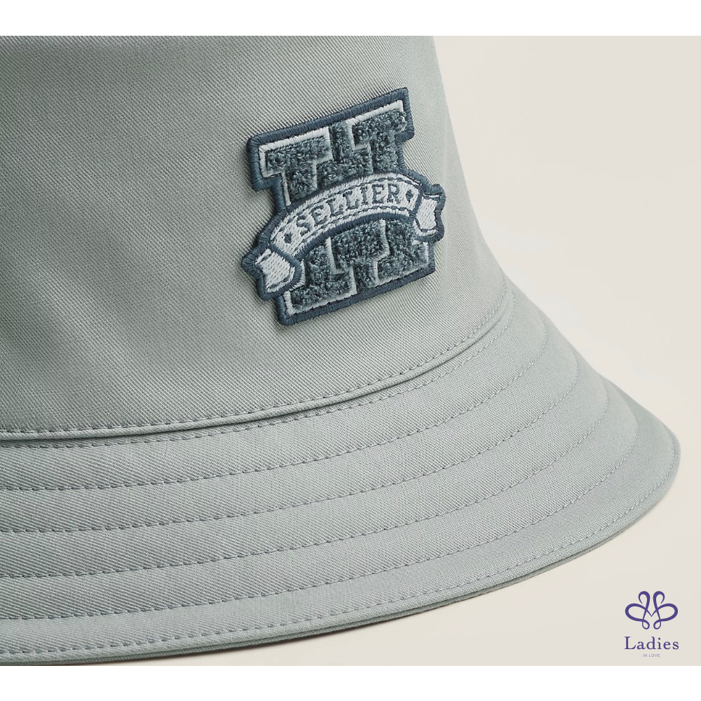 斜紋精梳棉女士漁夫帽,正面飾有「H Sellier」圈絨布料徽章。純色真絲和人造絲內襯。