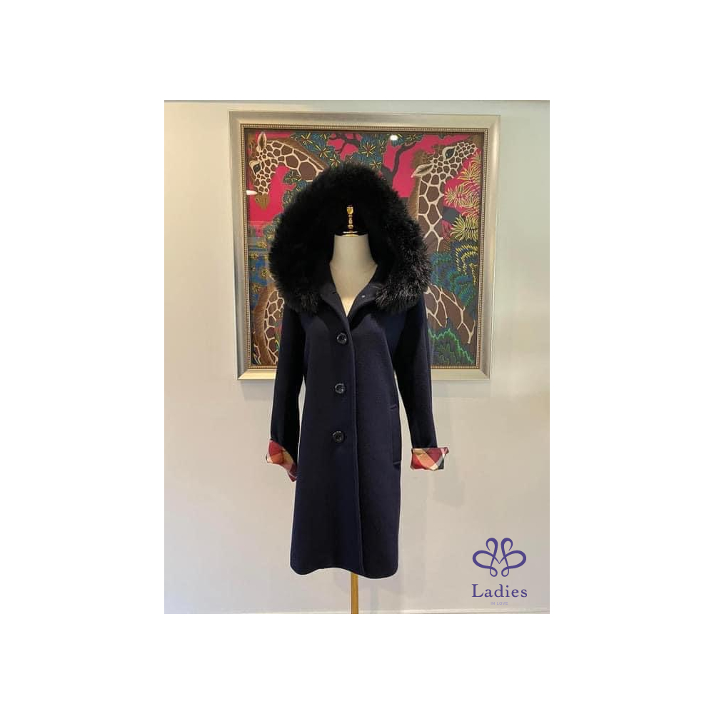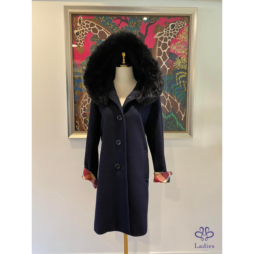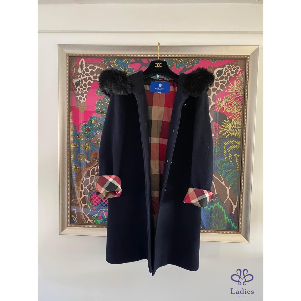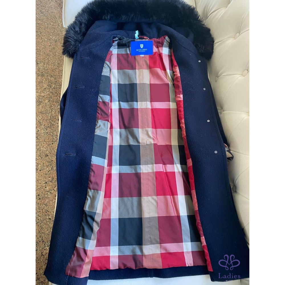 極美奢華千金款????超級美????BLUE LABEL CRESTBRIDGE藍標Burberry 深藍色 輕柔保暖 羊毛長大衣外套