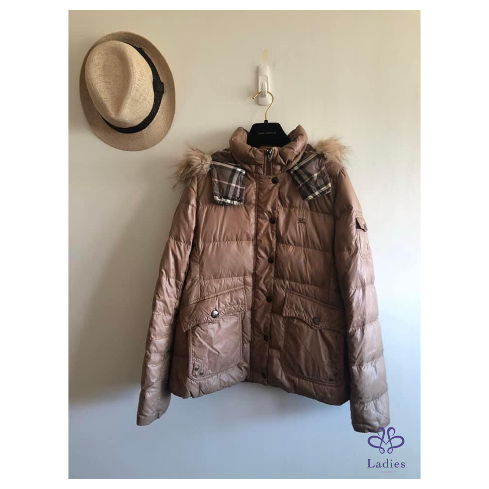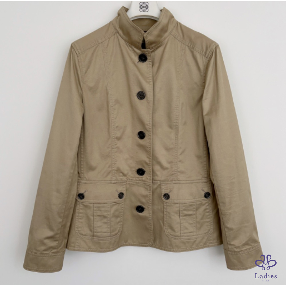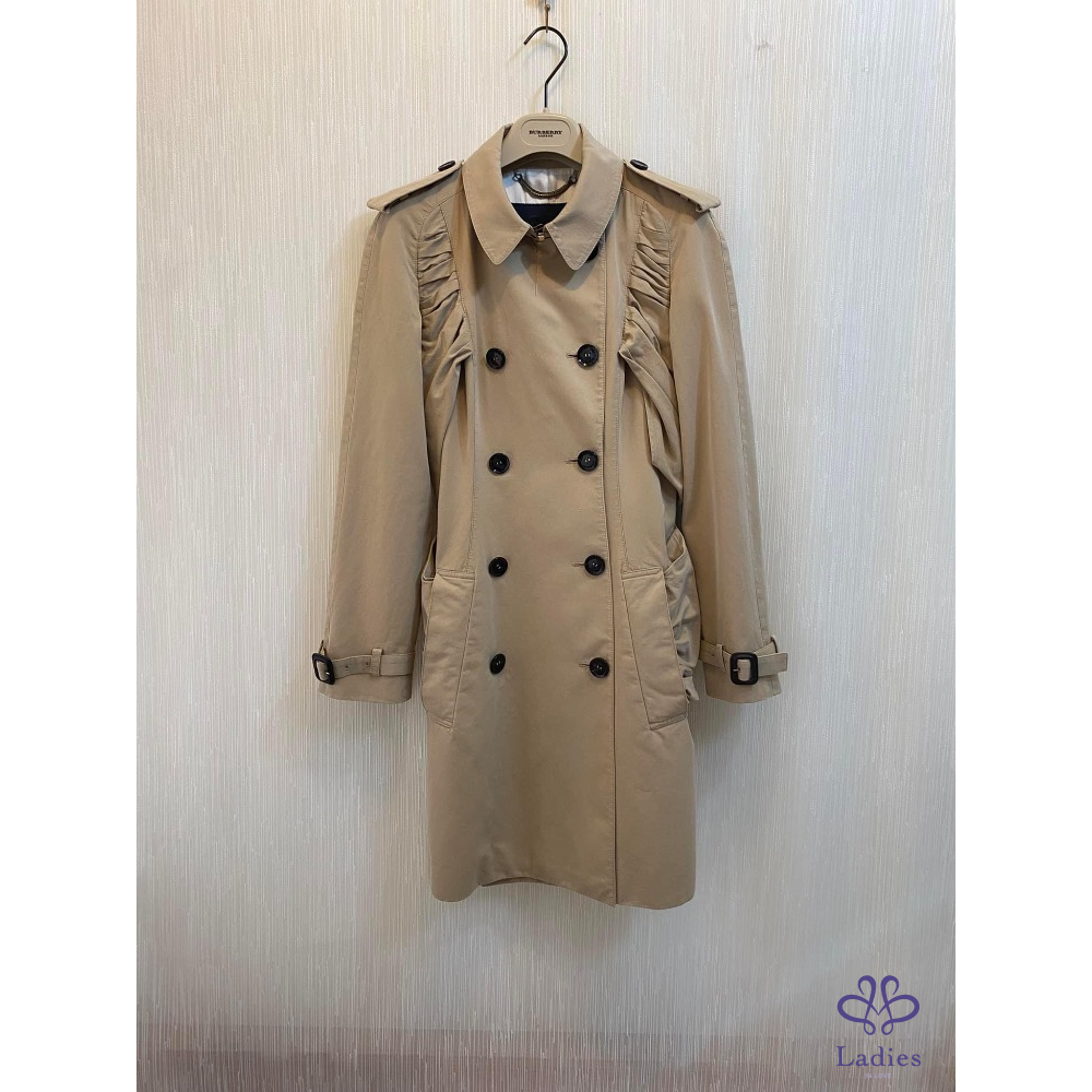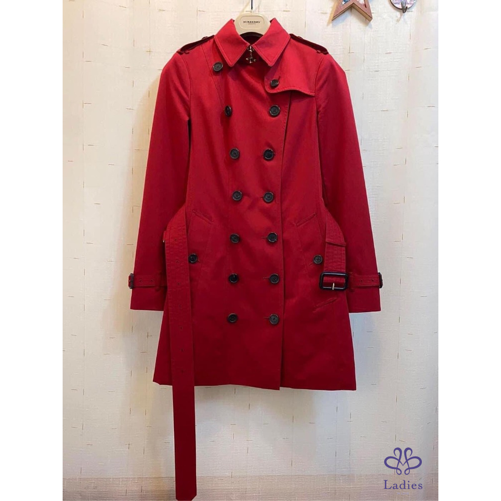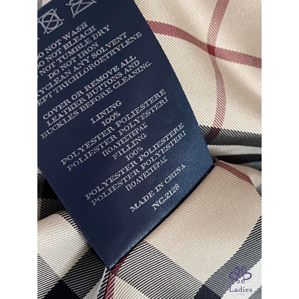 超美的湖水綠色,穿上非常顯瘦,領子有格紋設計,內裡、袖內滿是格紋設計,扣子及金屬上都有burberry的字樣,有附收納袋。
