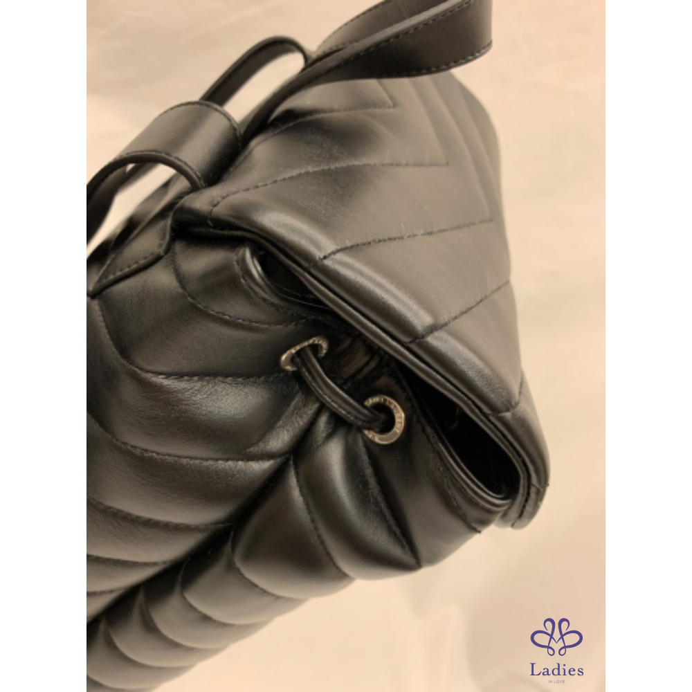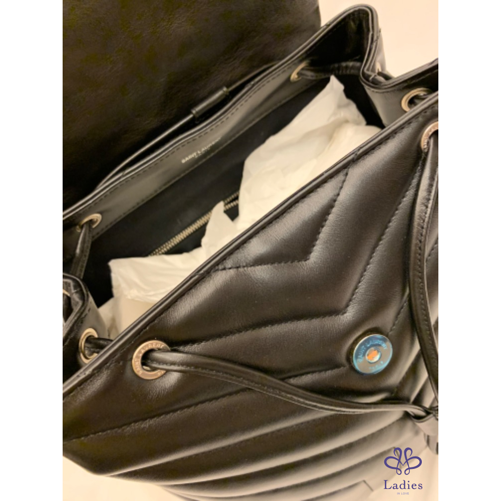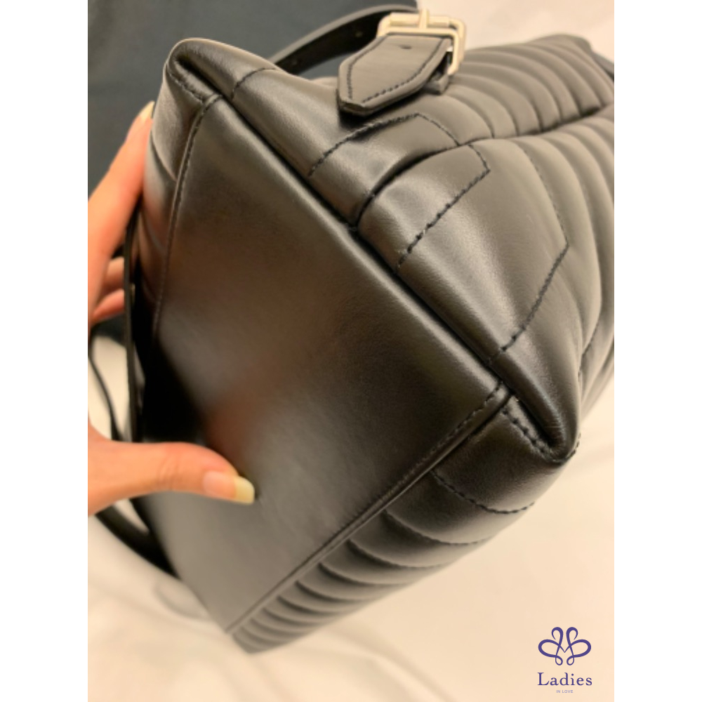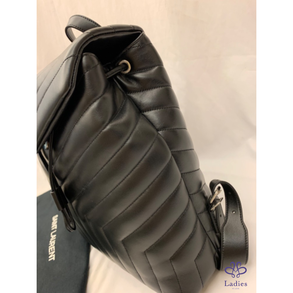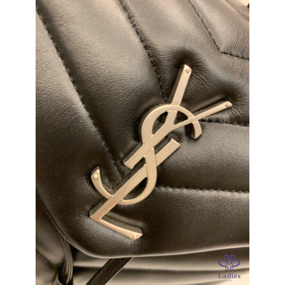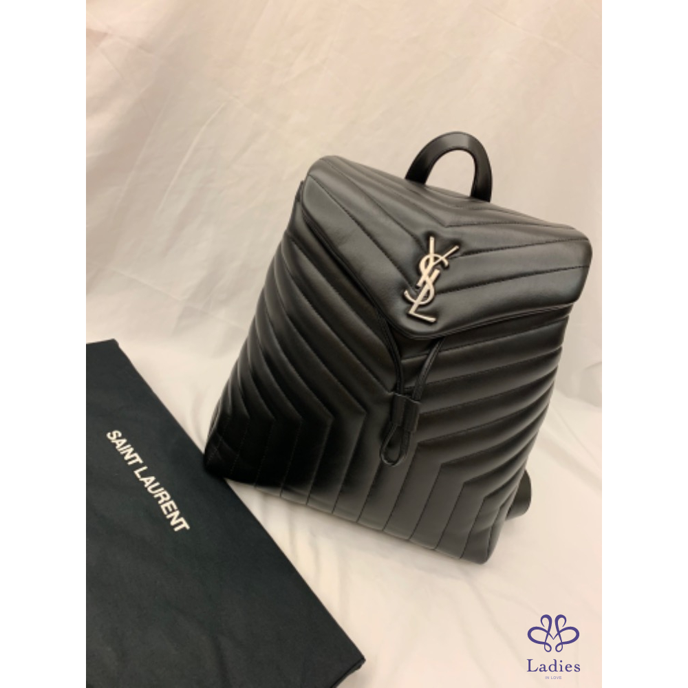 ⭐️YSL Saint Laurent Monogram Loulou V型車線真牛皮翻蓋束口雙肩後背包(黑)⭐️