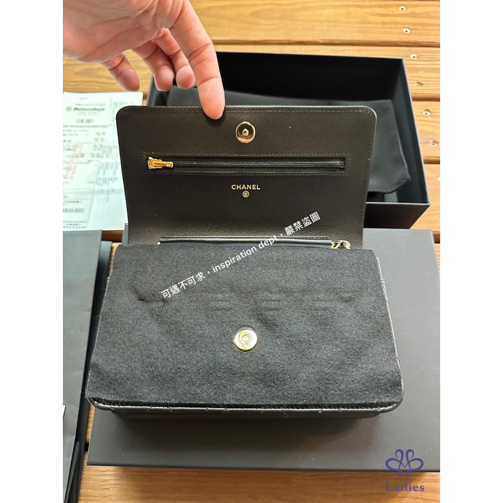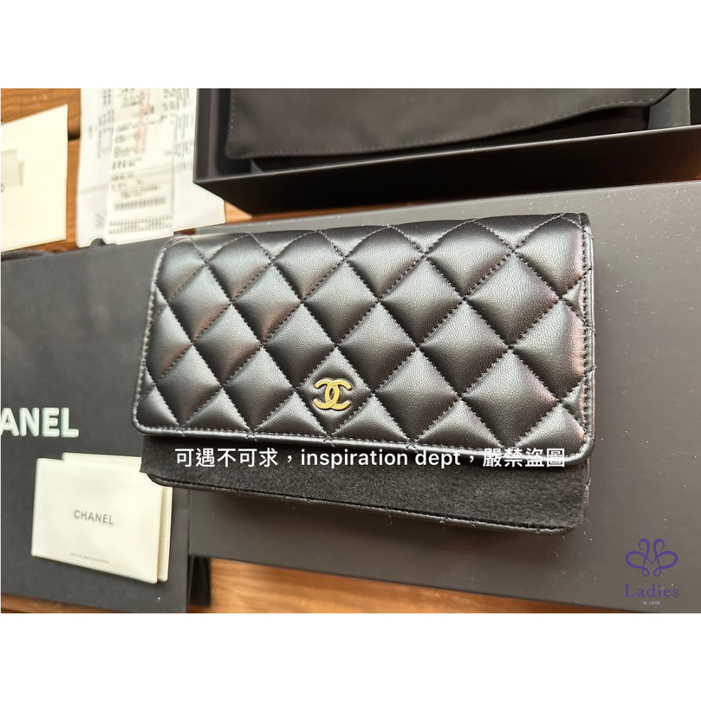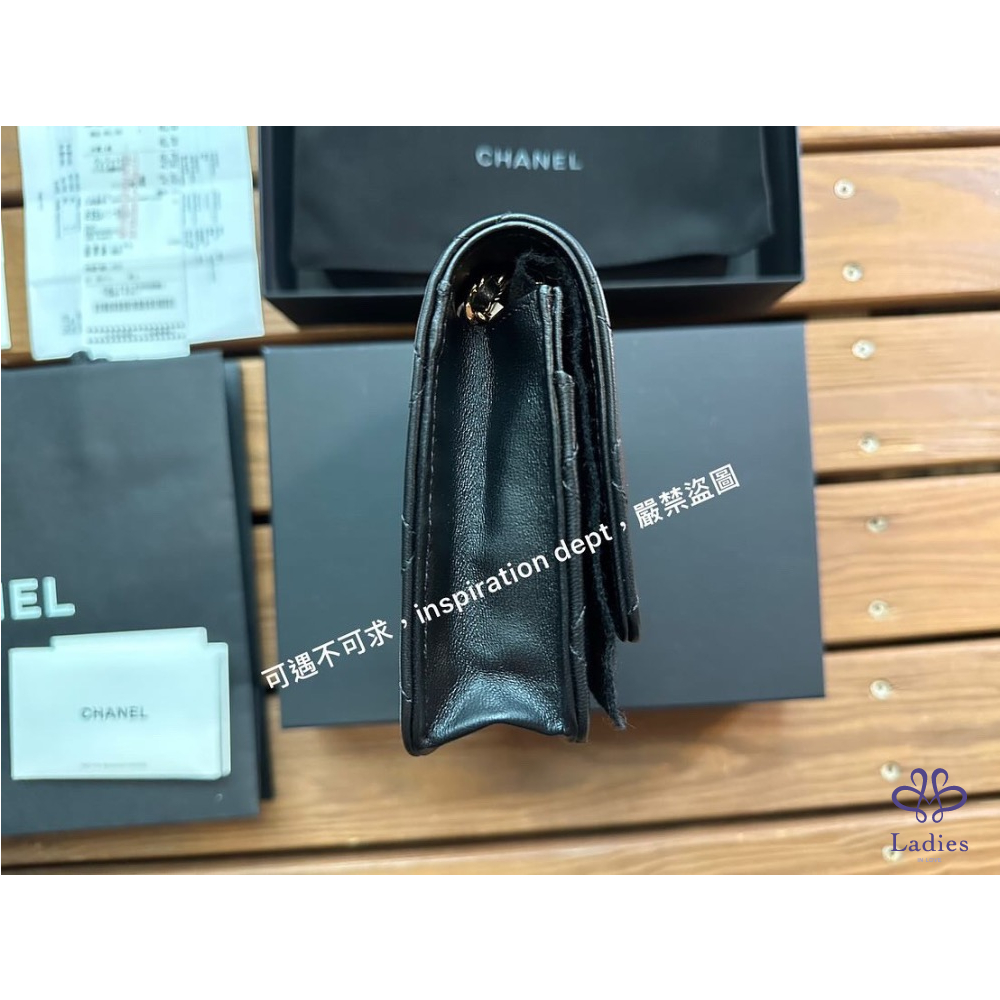 CHANEL 香奈兒 經典鏈子皮夾 CC Logo 淡金釦小羊皮 黑色 WOC AP0250 Y01295 C3906
