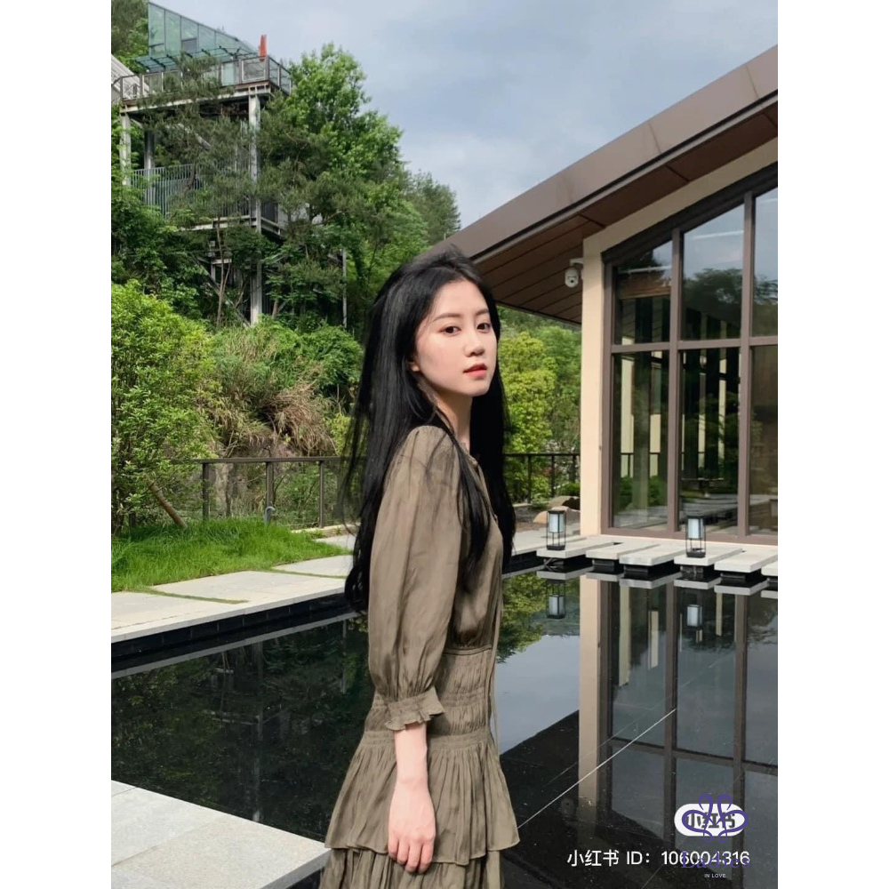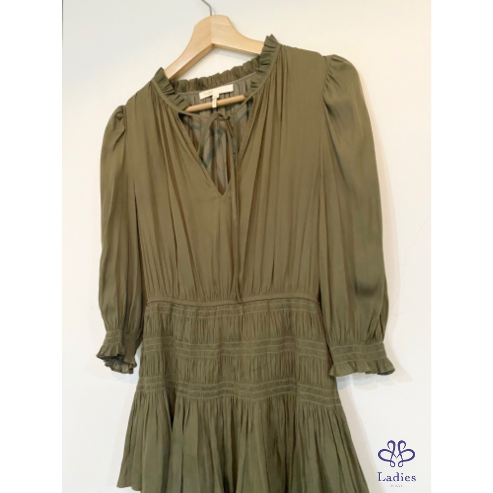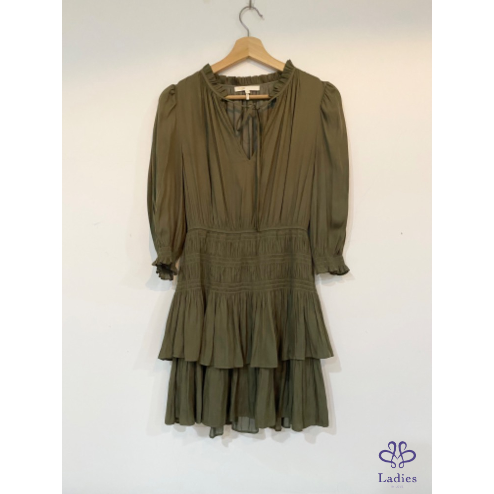 巴黎輕奢品牌 MAJE 橄欖綠類真絲綢綁帶洋裝