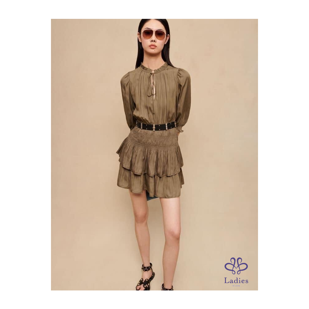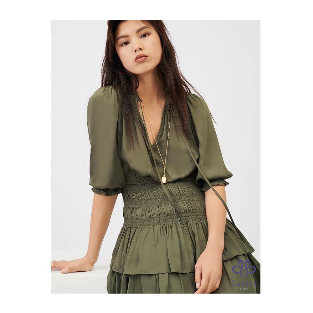 首頁 精品服飾 巴黎輕奢品牌 MAJE 橄欖綠類真絲綢綁帶洋裝