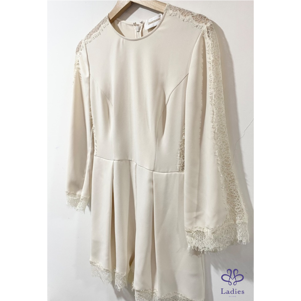 Zimmermann奶油白燒花蕾絲簍空連身褲