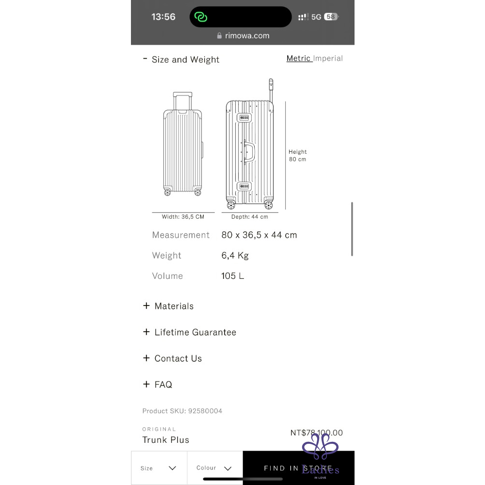 Rimowa Original Trunk Plus鋁合金運動箱   銀色