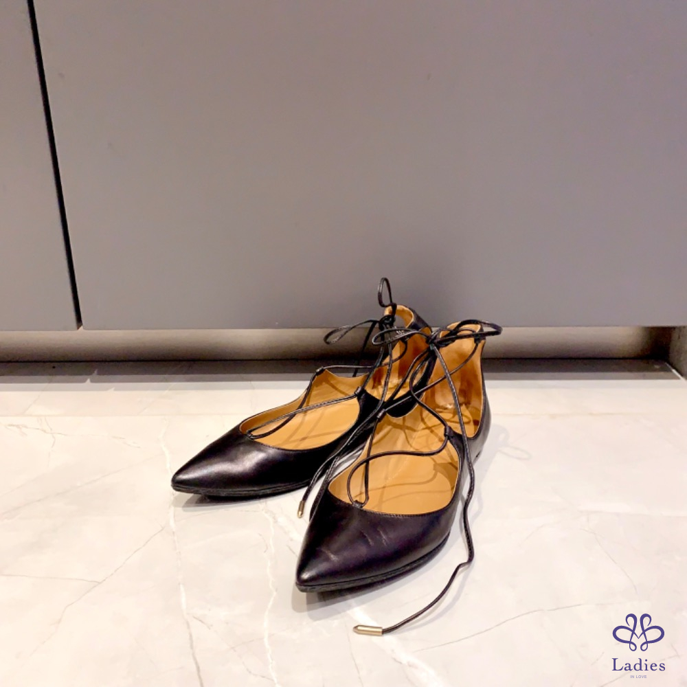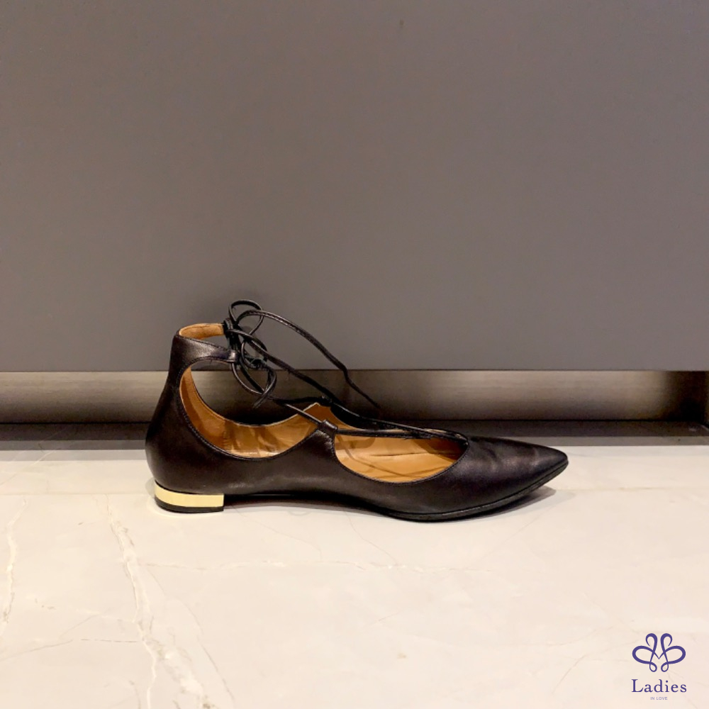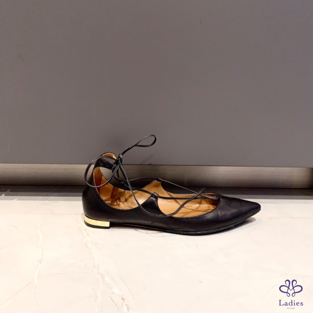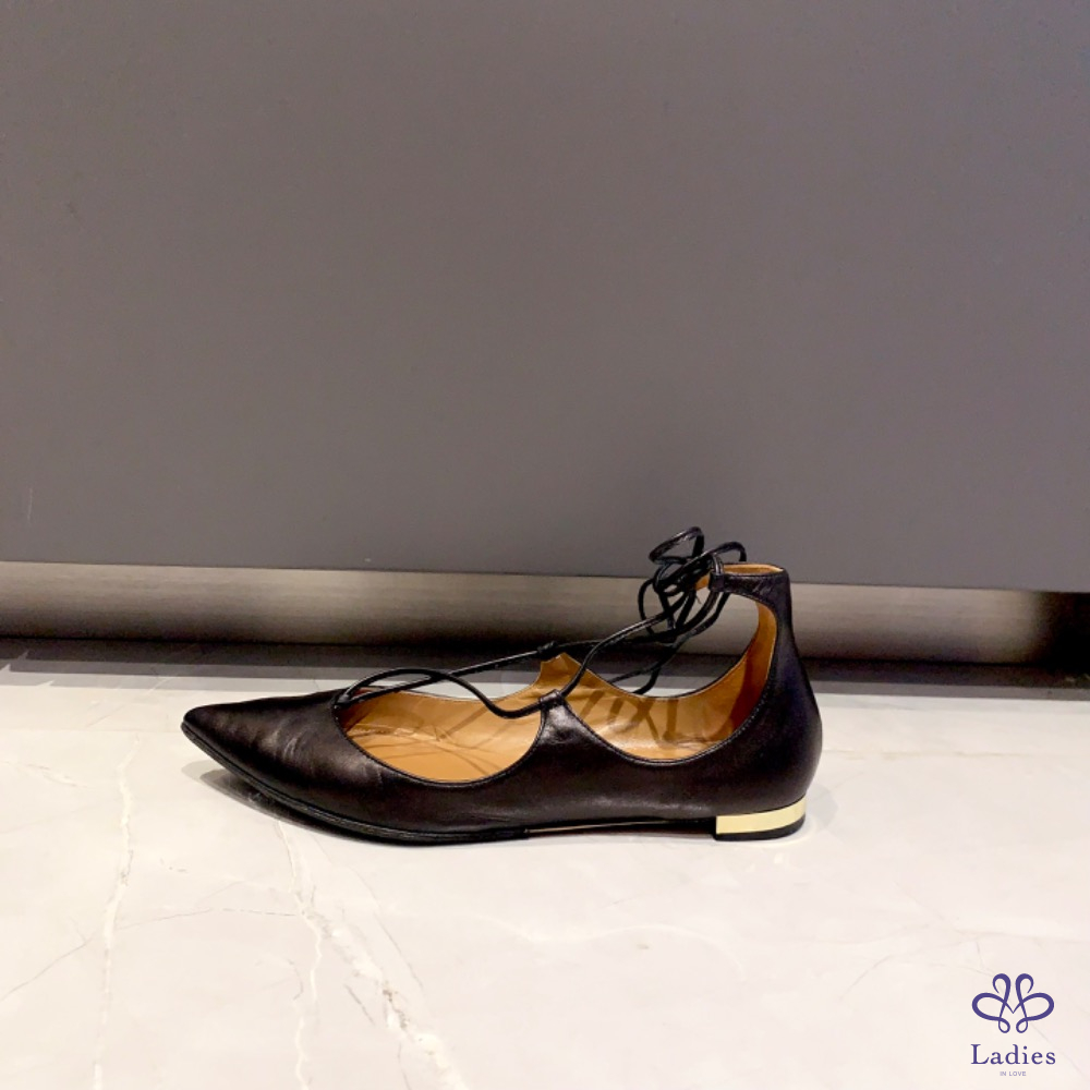 Aquazzura 黑色綁帶平底鞋