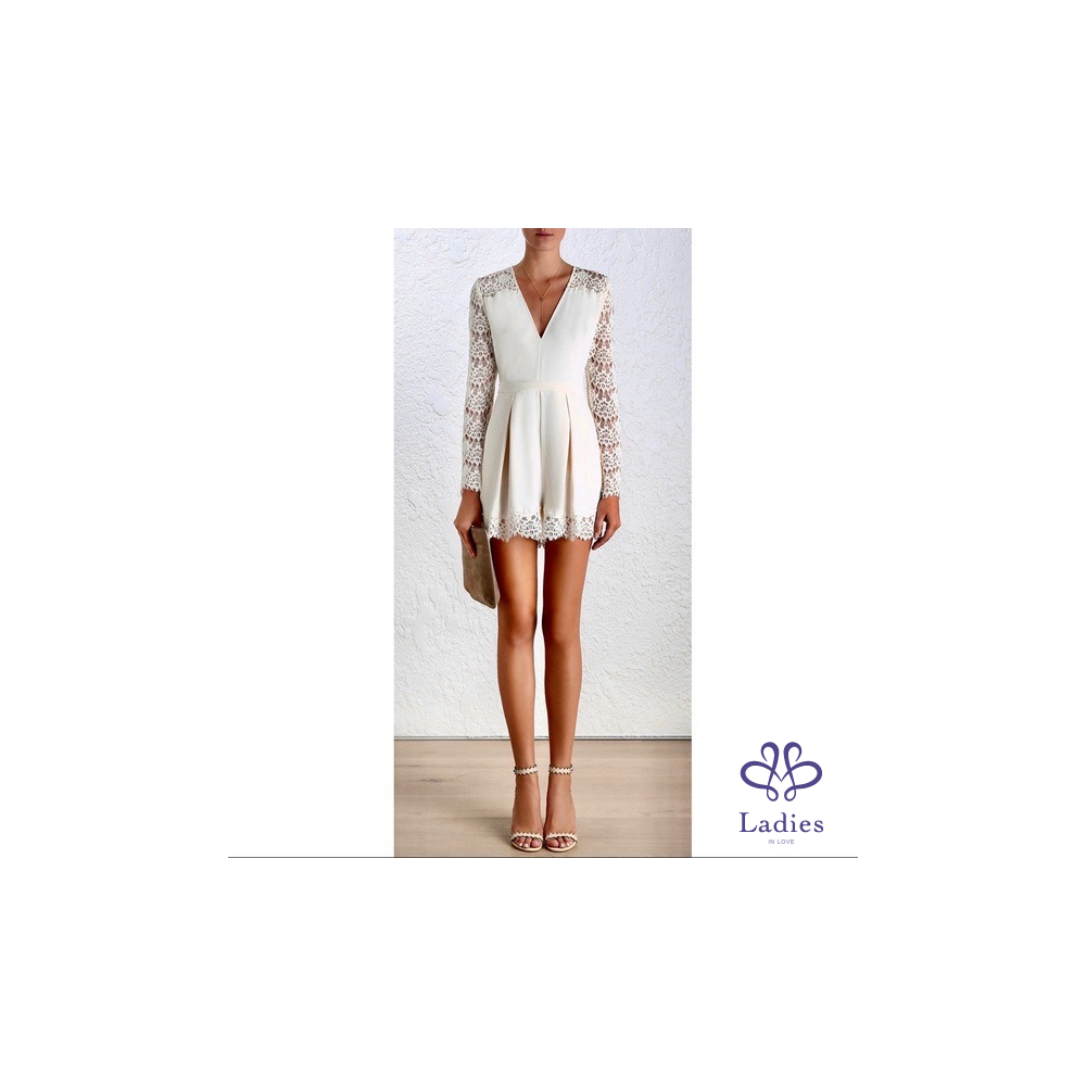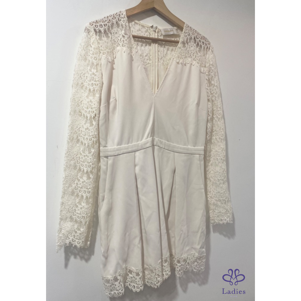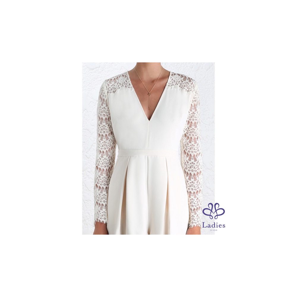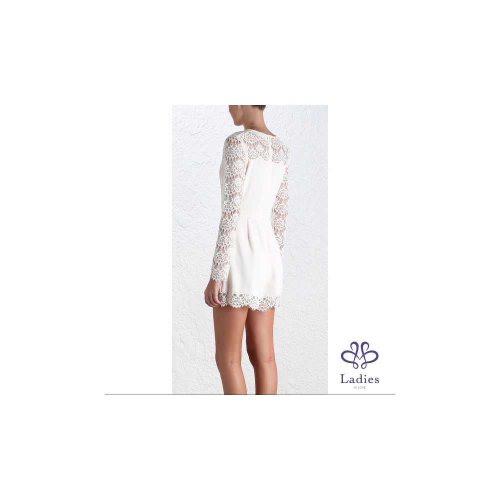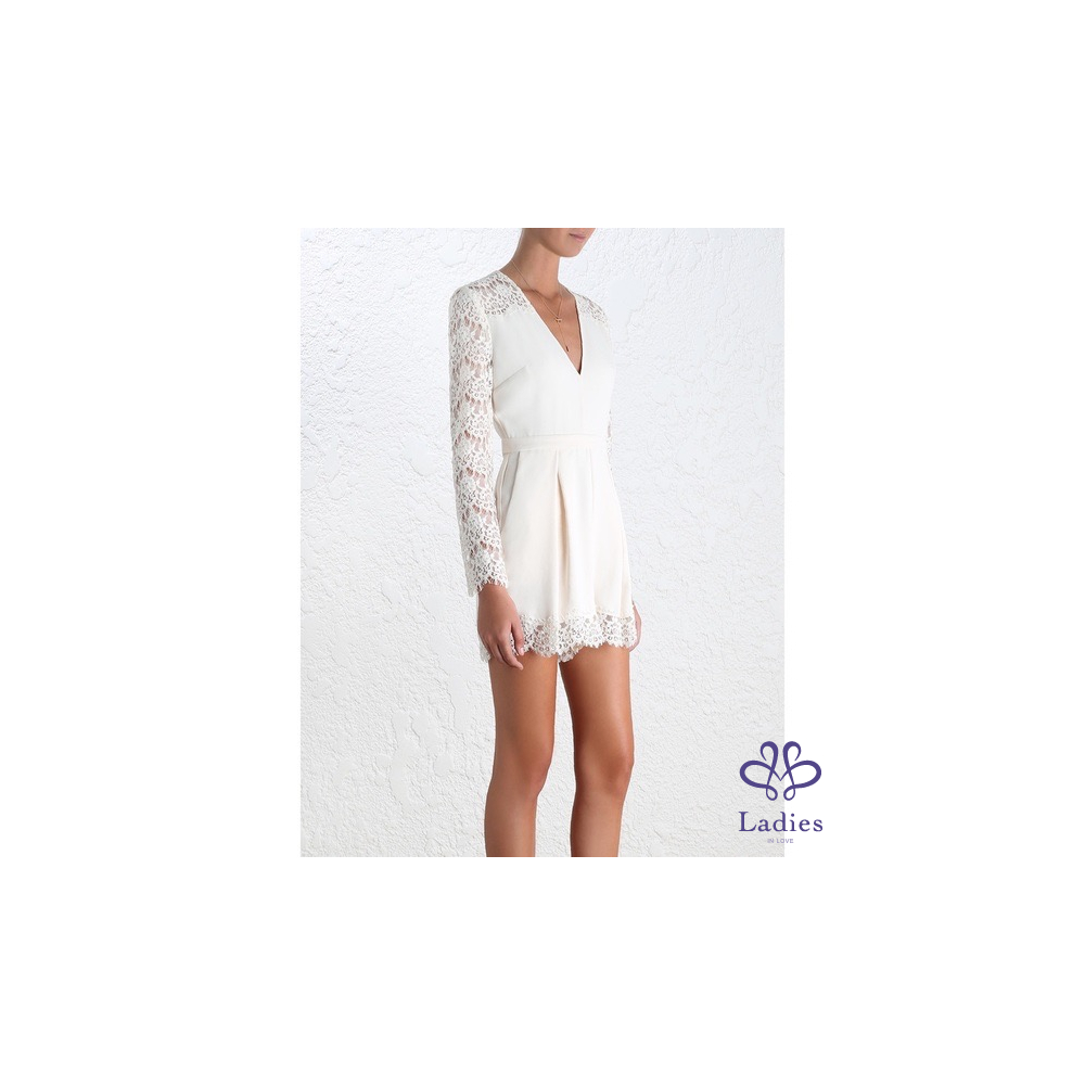 首頁 精品服飾 ZimmermannV領奶油白燒花蕾絲簍空連身褲