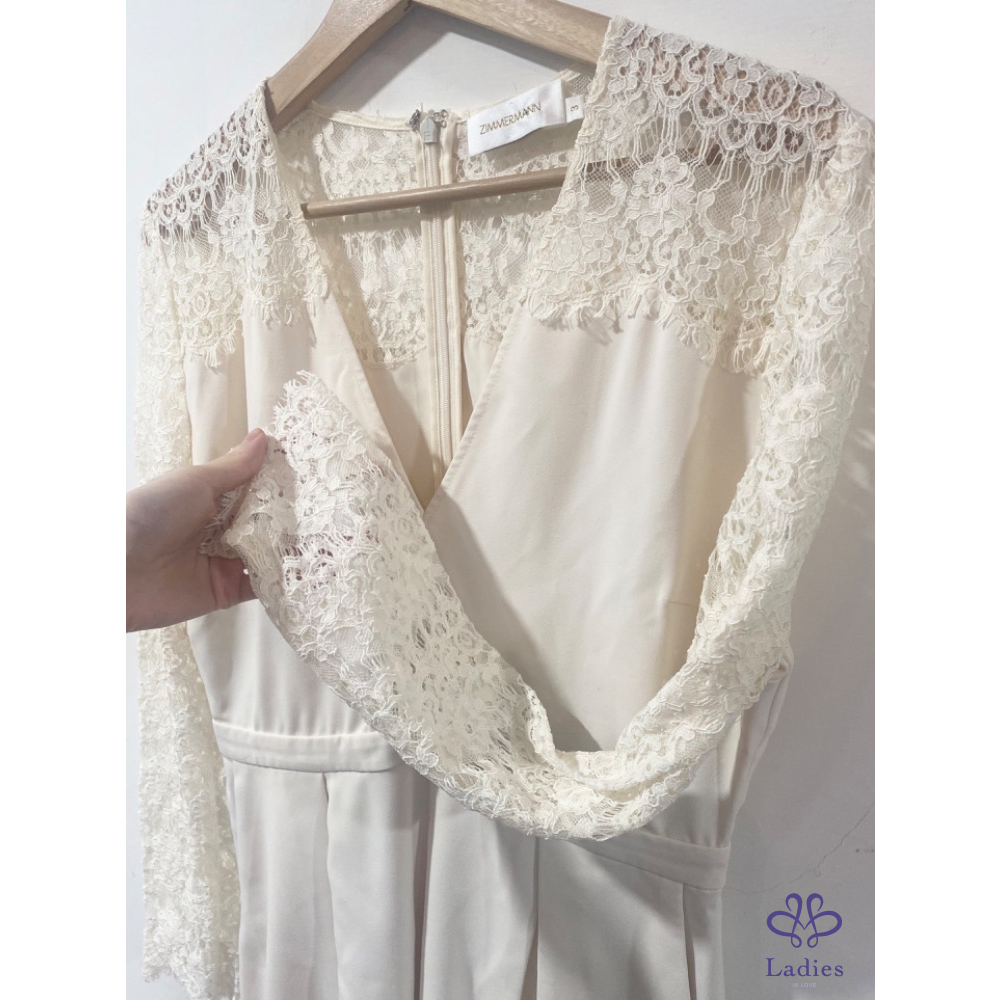 ZimmermannV領奶油白燒花蕾絲簍空連身褲