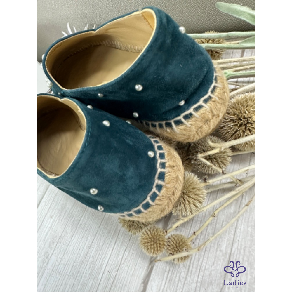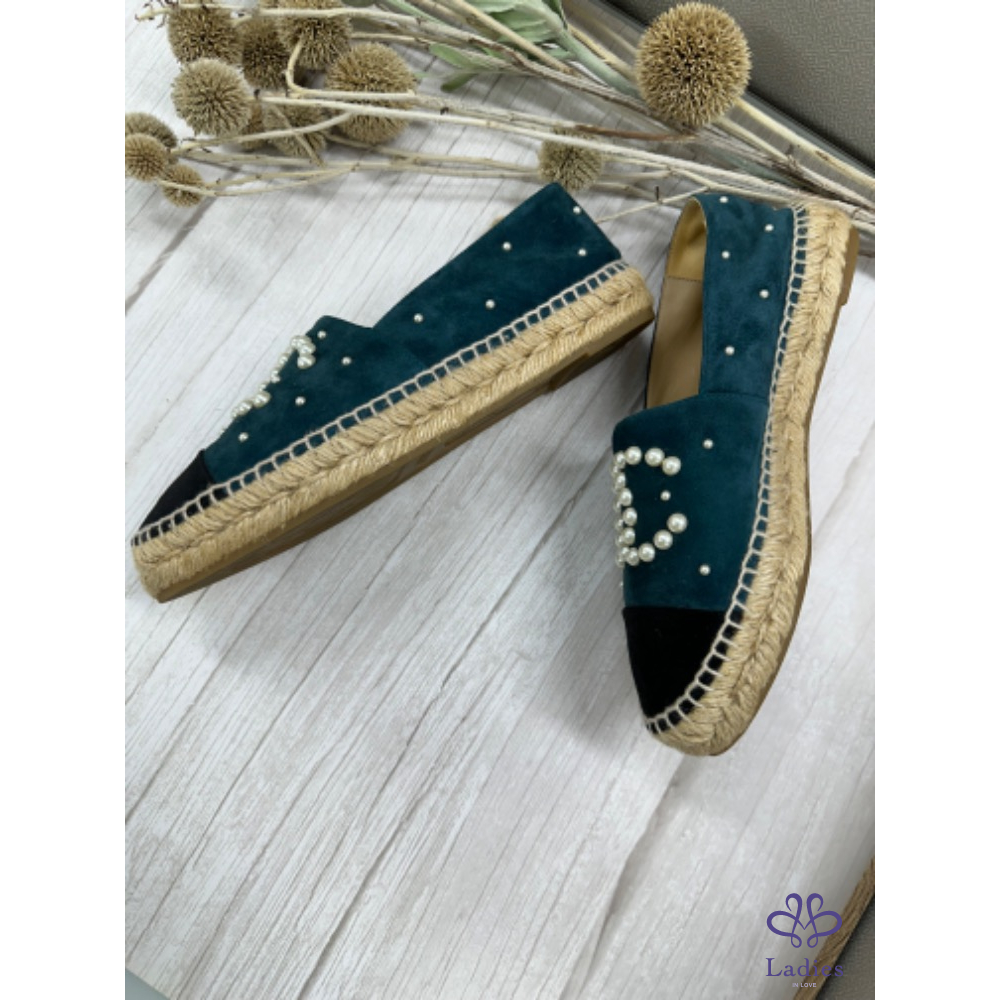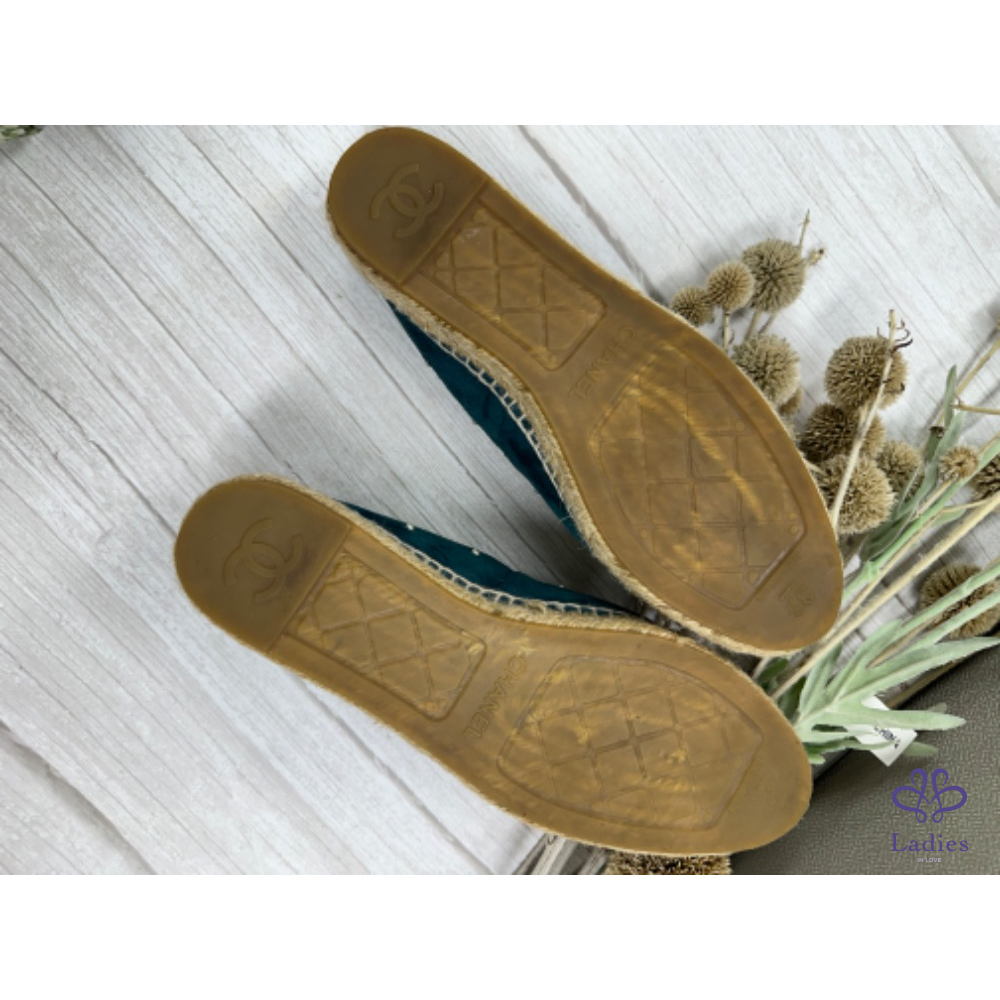 Chanel 藍色麂皮珍珠漁夫鞋 39