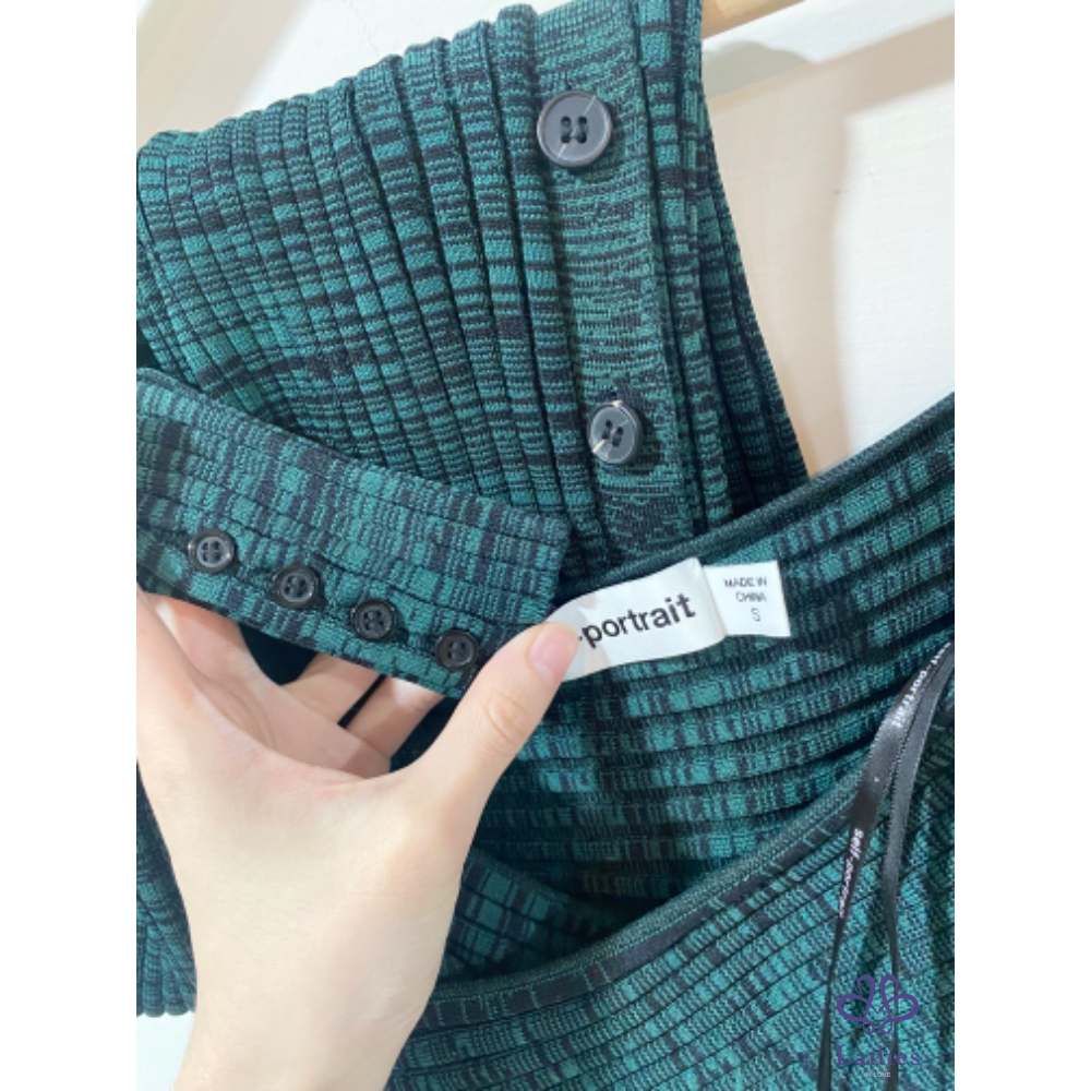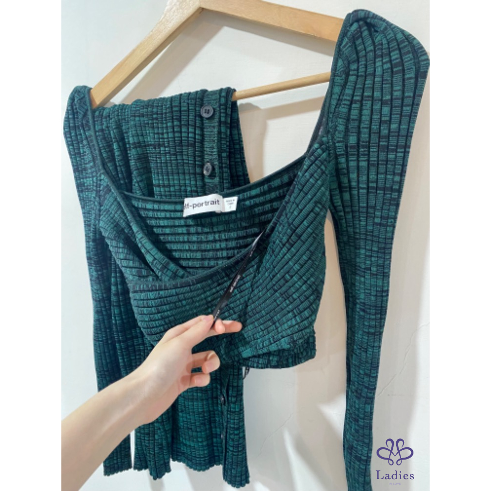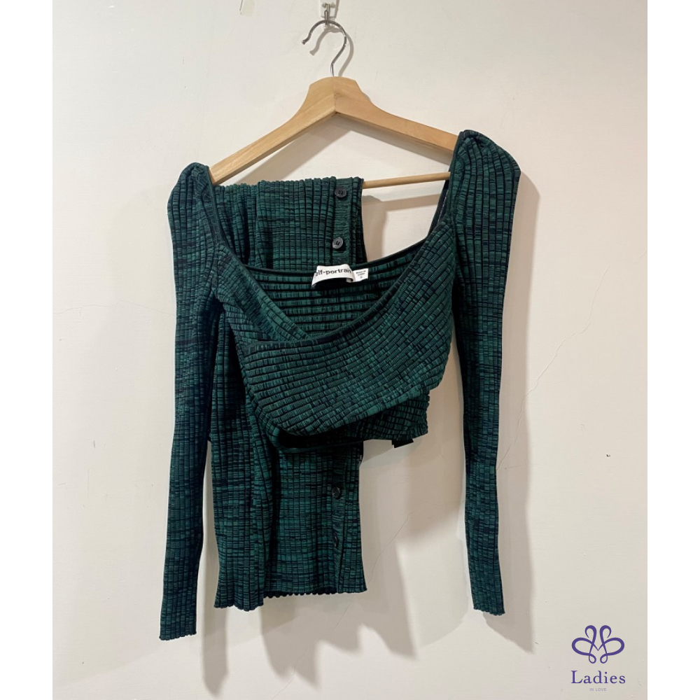 英國仙女品牌 Self portrait 墨綠混色交叉羅紋針織彈性套裝(上衣+長裙套組)