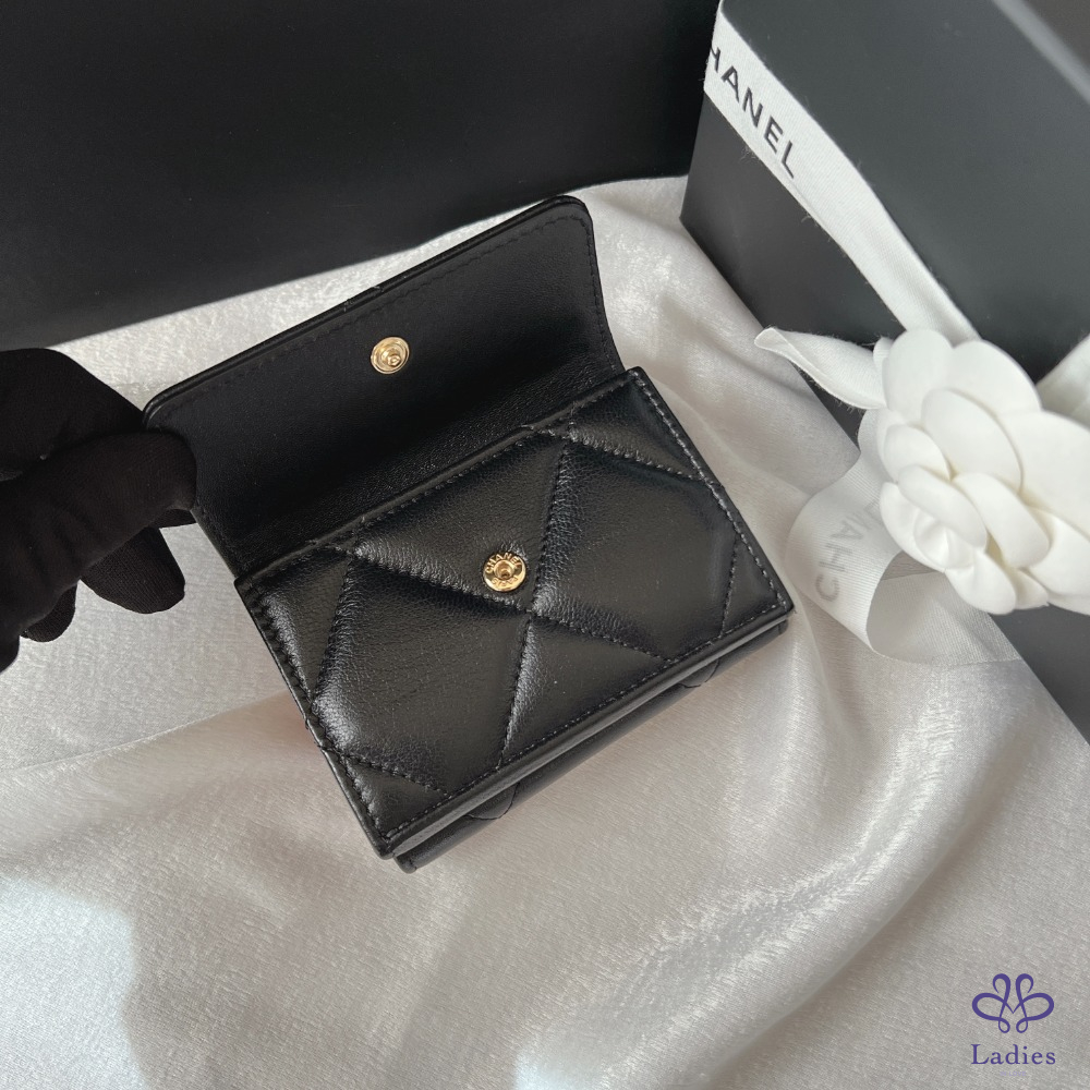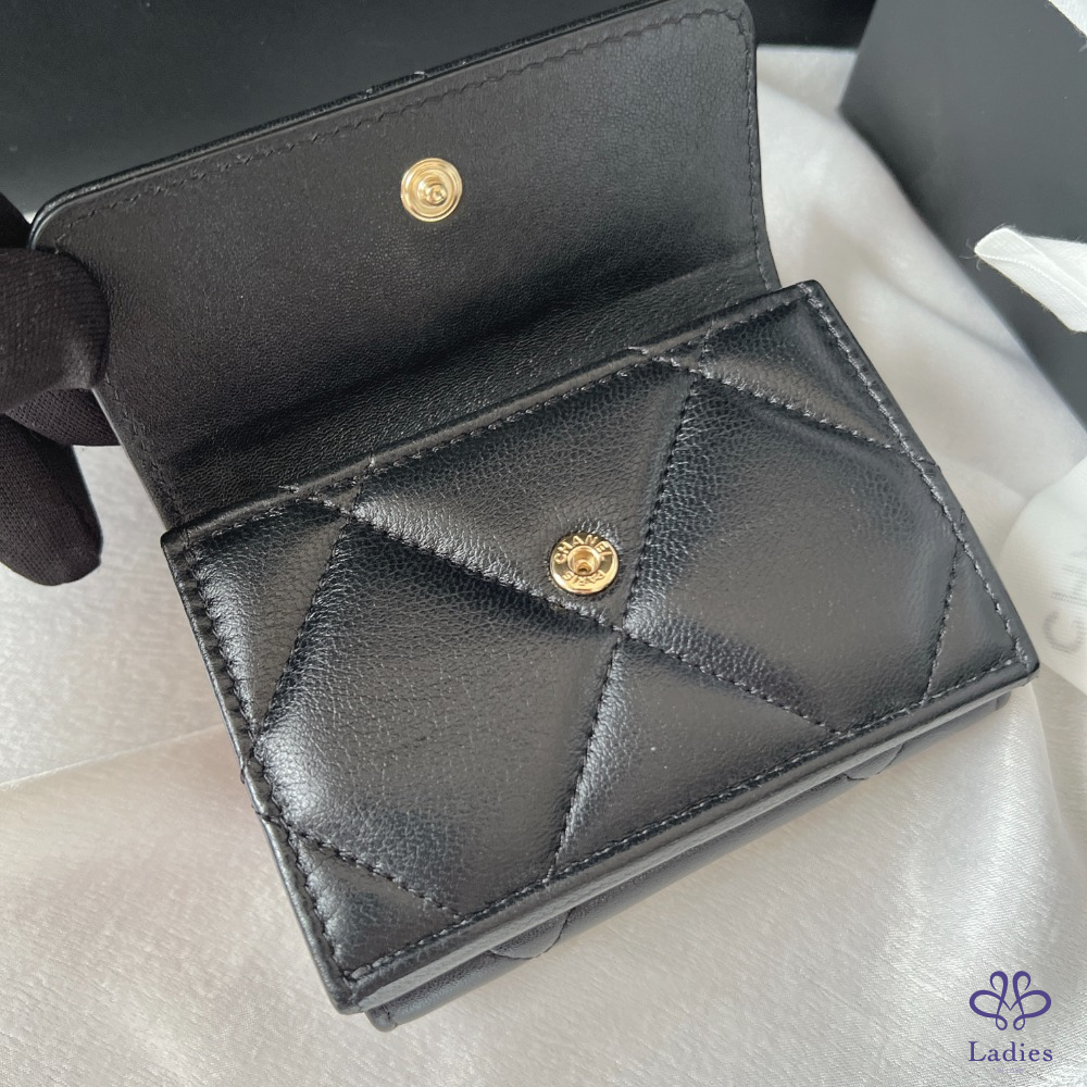 CHANEL 19經典黑金 三折短夾 巴黎購正