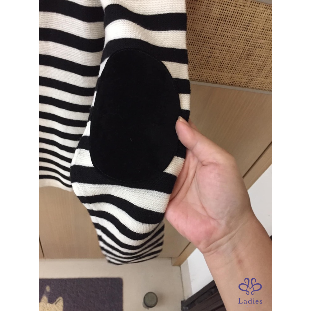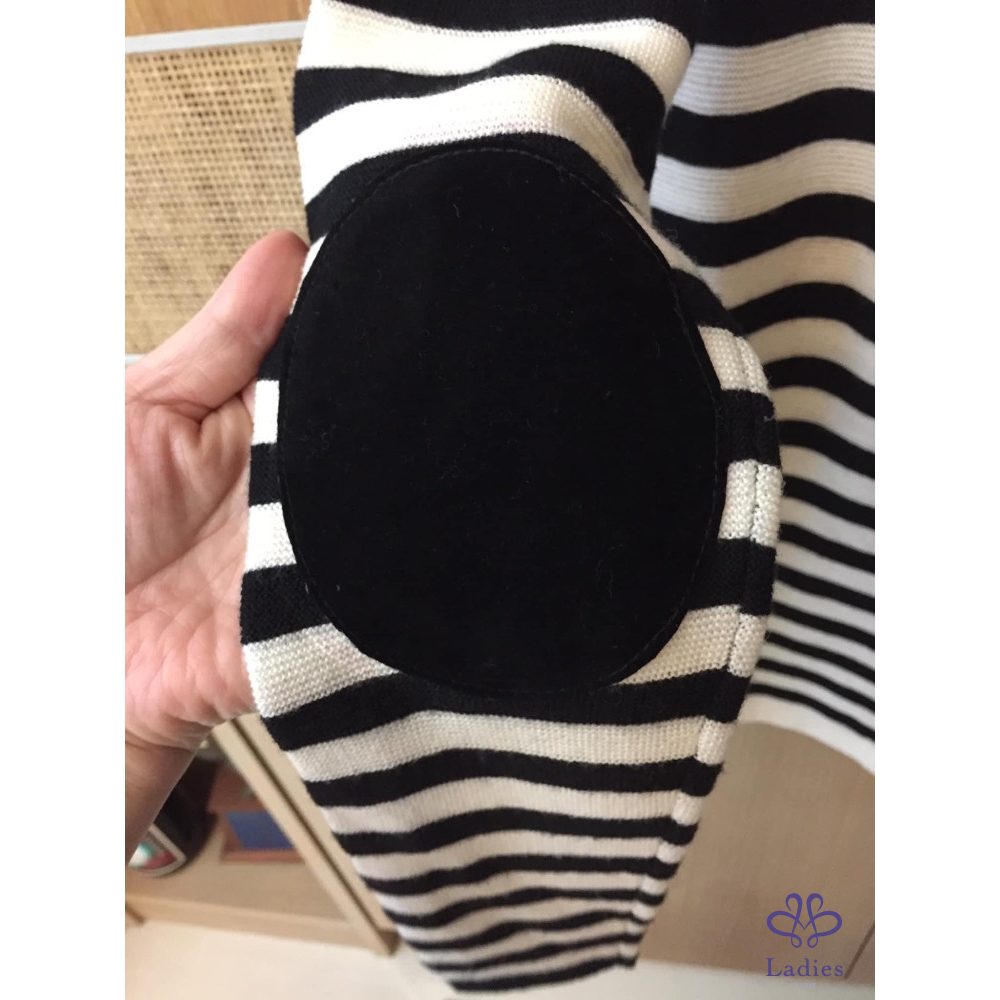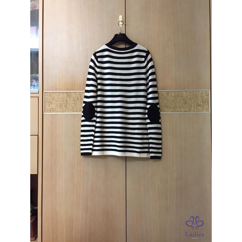 經典不敗的條紋這件是黑米色針織上衣更是雋永兩側有小口袋裝飾柔美可愛後面袖子關節處使用絨布補丁不失個性繫上腰帶搭配裙子或是寬褲都好有氣質喔 出清價$2980含運售出不退感謝辛苦管理員謝謝美女們推喔她團
