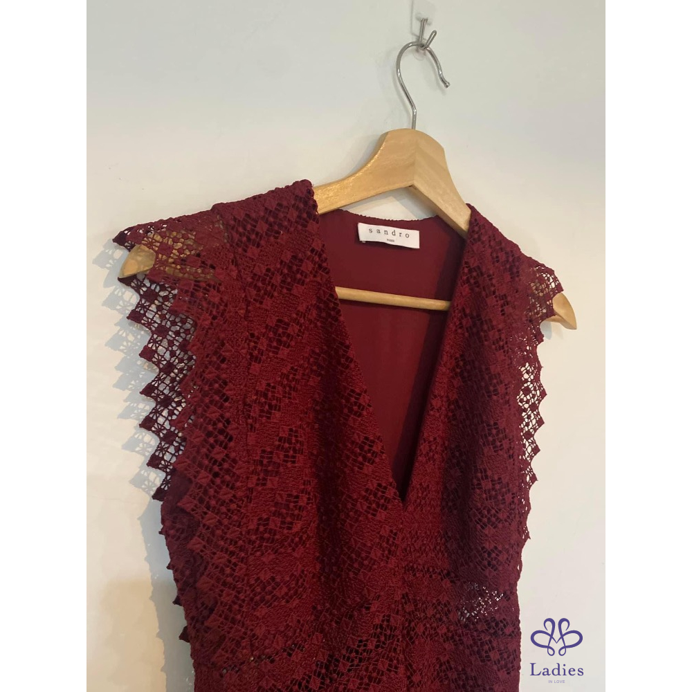Sandro 幾何燒花蕾絲V領傘狀洋裝