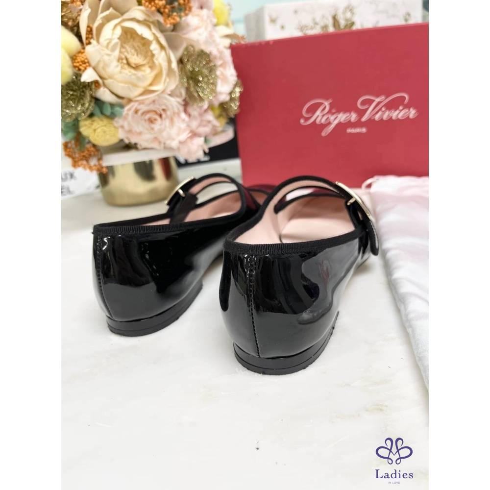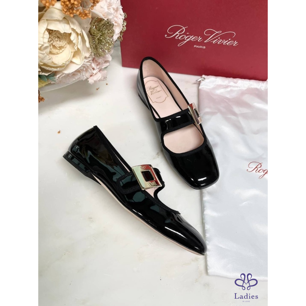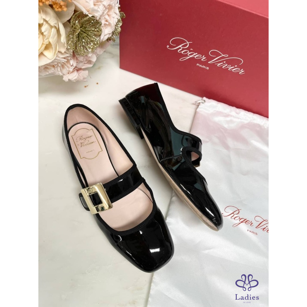 ✨Roger Vivier 黑色漆皮方釦娃娃鞋 37