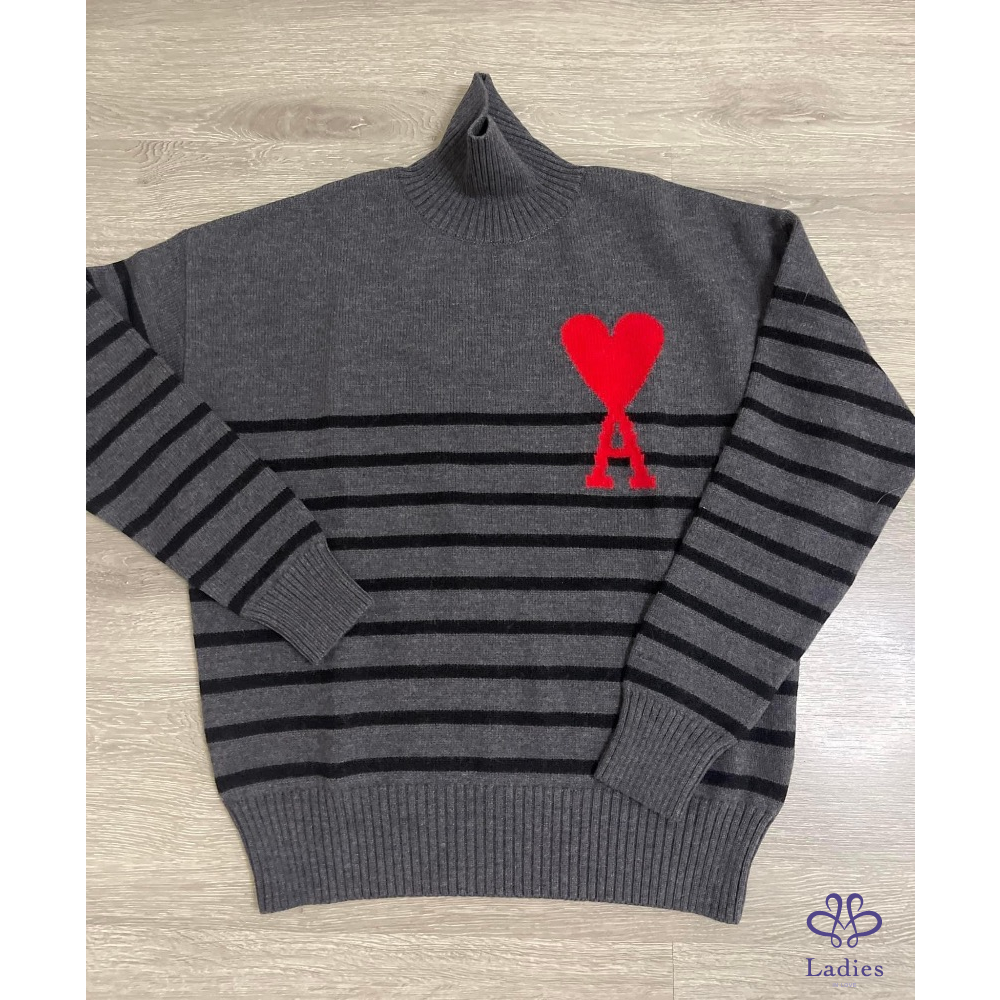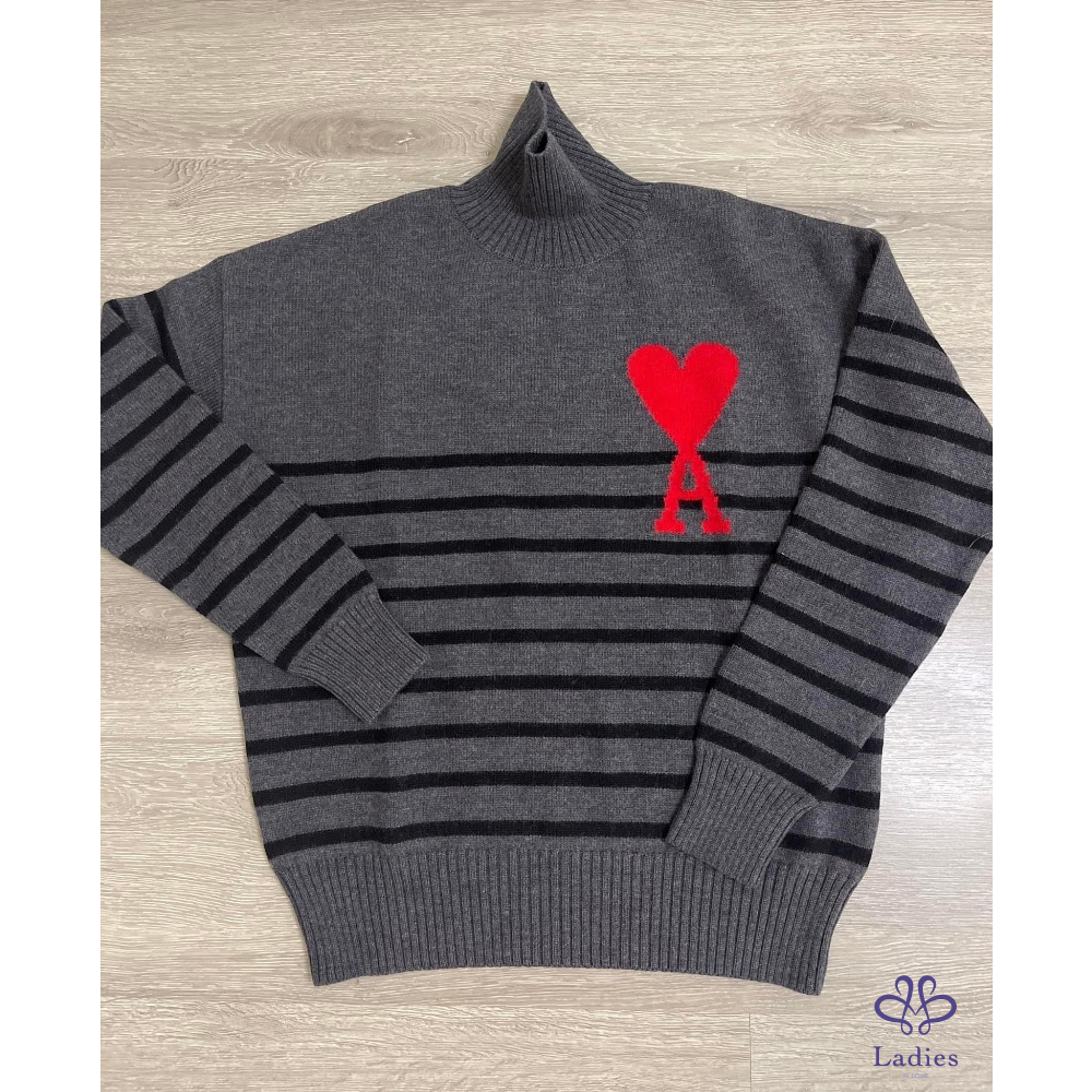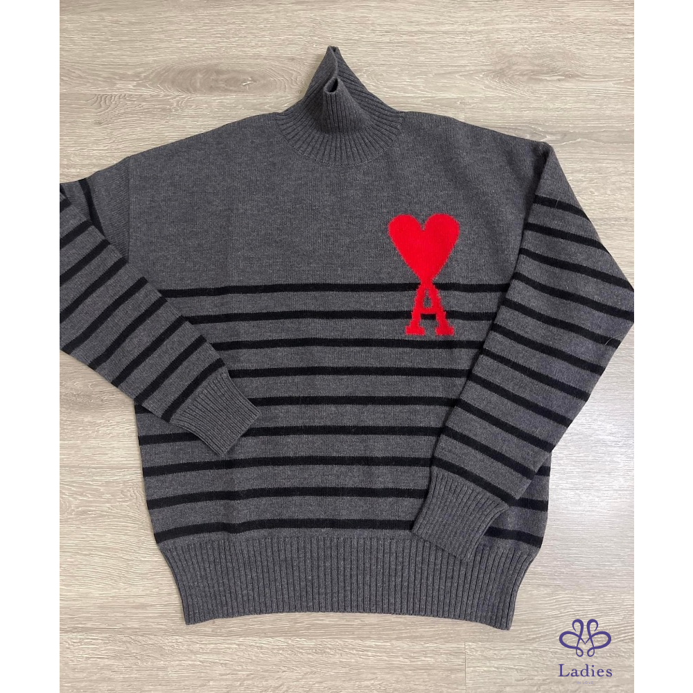 全新 Ami 灰色條紋立領毛衣