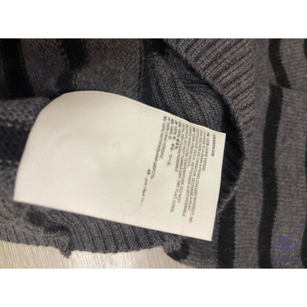 首頁 精品服飾 全新 Ami 灰色條紋立領毛衣