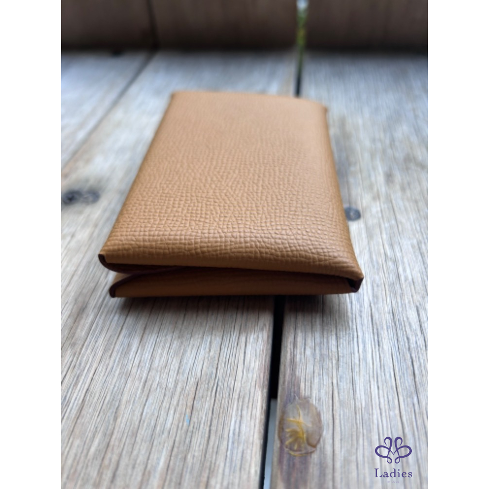 海外購入,B刻,Epsom 皮。 大地標色,容量很大,又輕巧,最實用也是最難買的小皮件