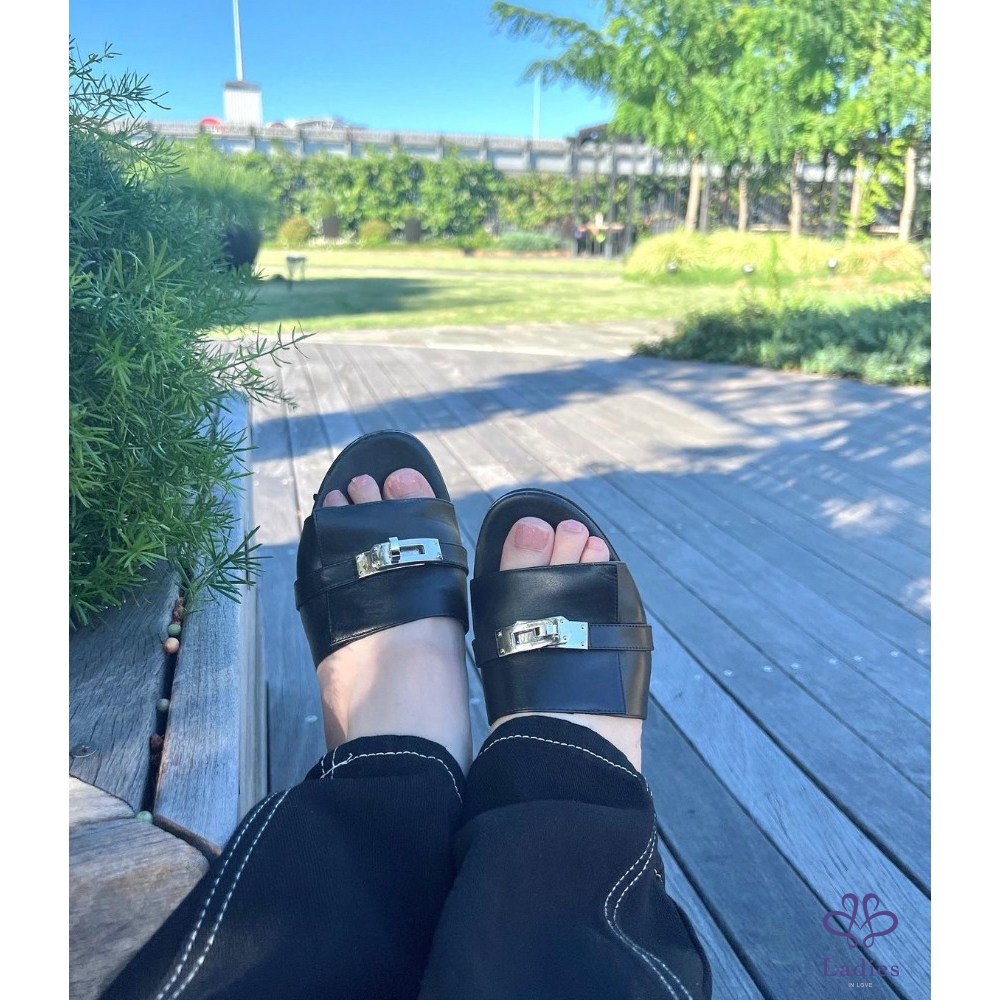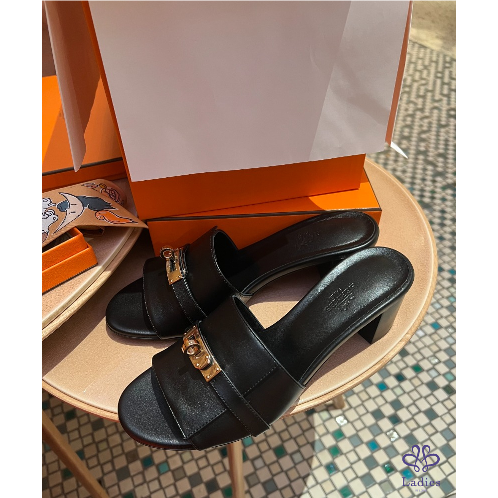 Hermes愛馬仕 玫瑰金 Kelly釦跟鞋 37.5