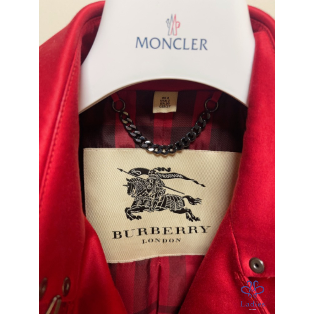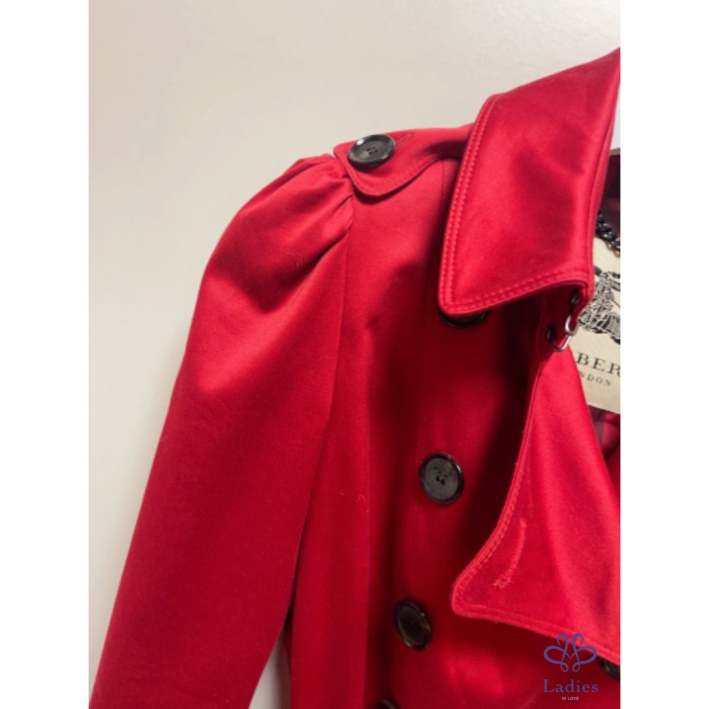 產品信息 寵愛認證賣家A005270 精品時尚品牌 Burberry經典喜氣萬搭紅極美顯瘦風衣外套 Size:UK4 購於信義新光三越Burberry專櫃 購價快7萬元 現在都漲價,而且這款算是經典不敗款。 早買早享受,非常值得 附件:防塵套 買回少穿,只有穿過2次。割愛給有緣美女,高標勿標,不提供退貨服務,他團同步。謝謝