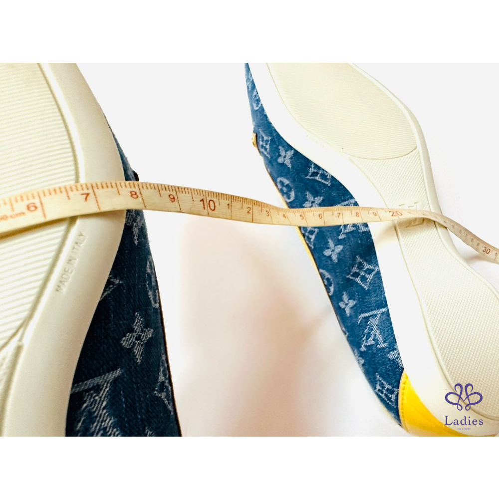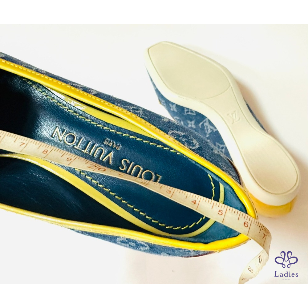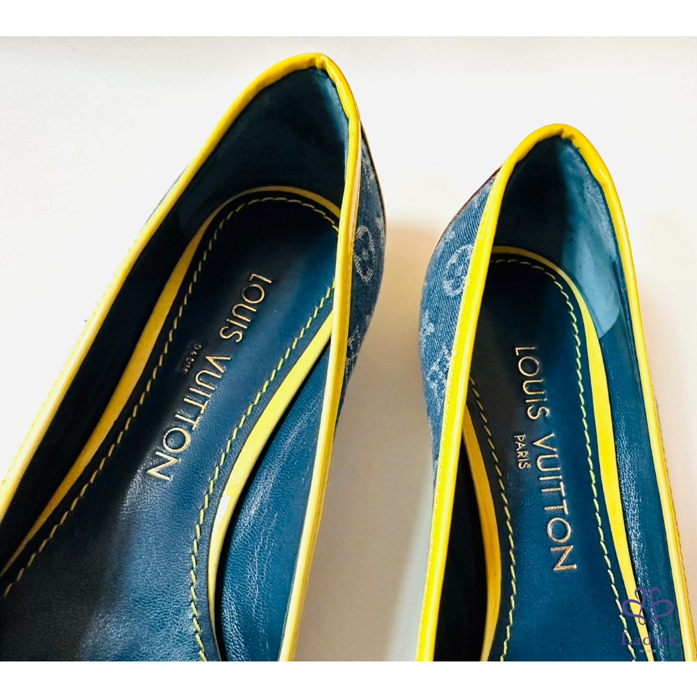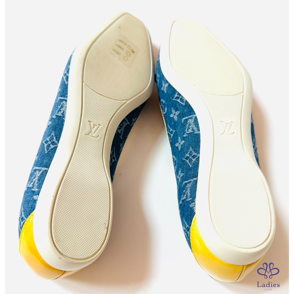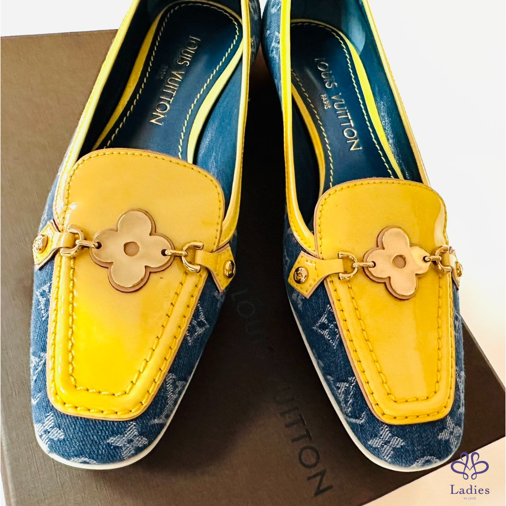 ~LV牛仔布料黃邊金色四葉草36.5鞋頭掛飾平底鞋