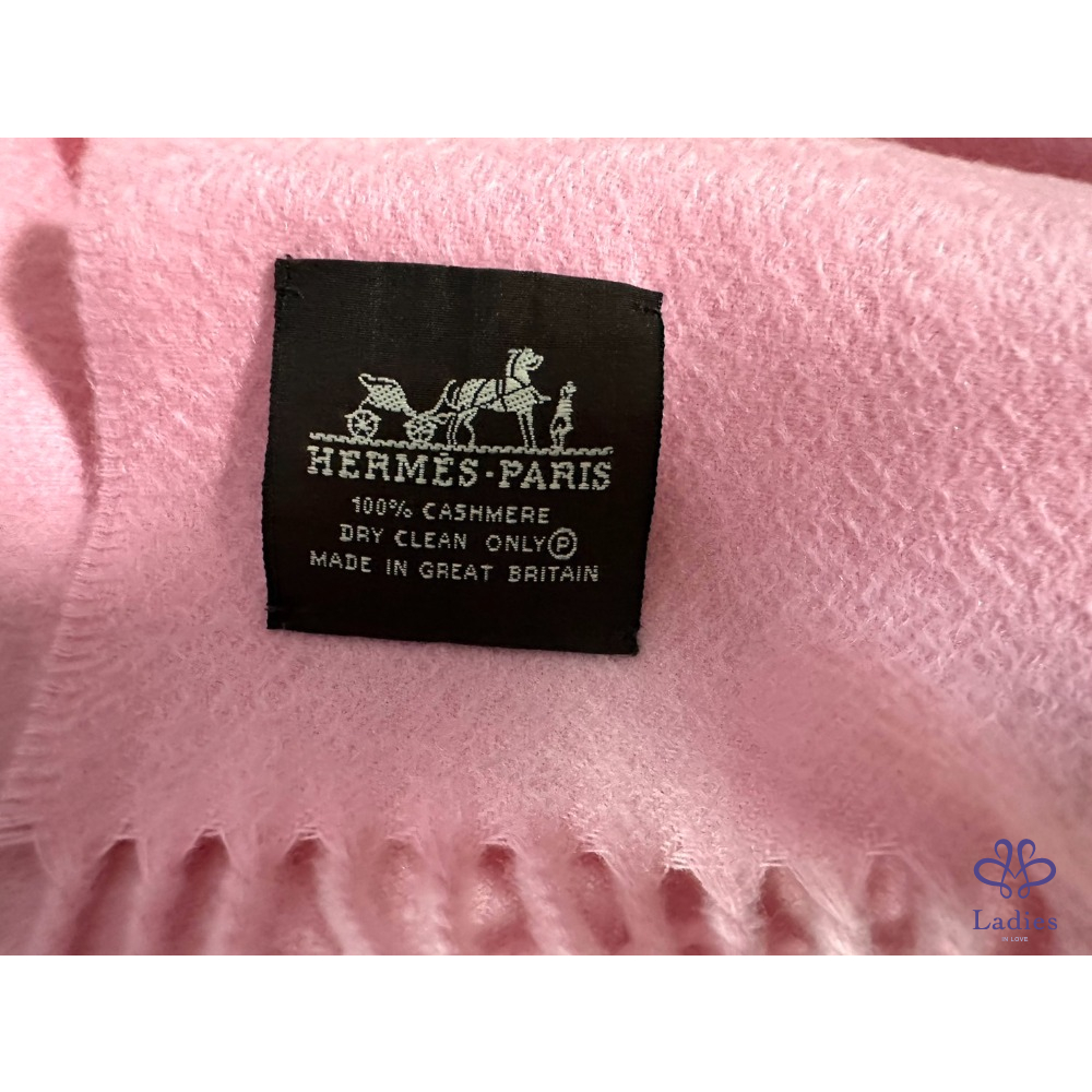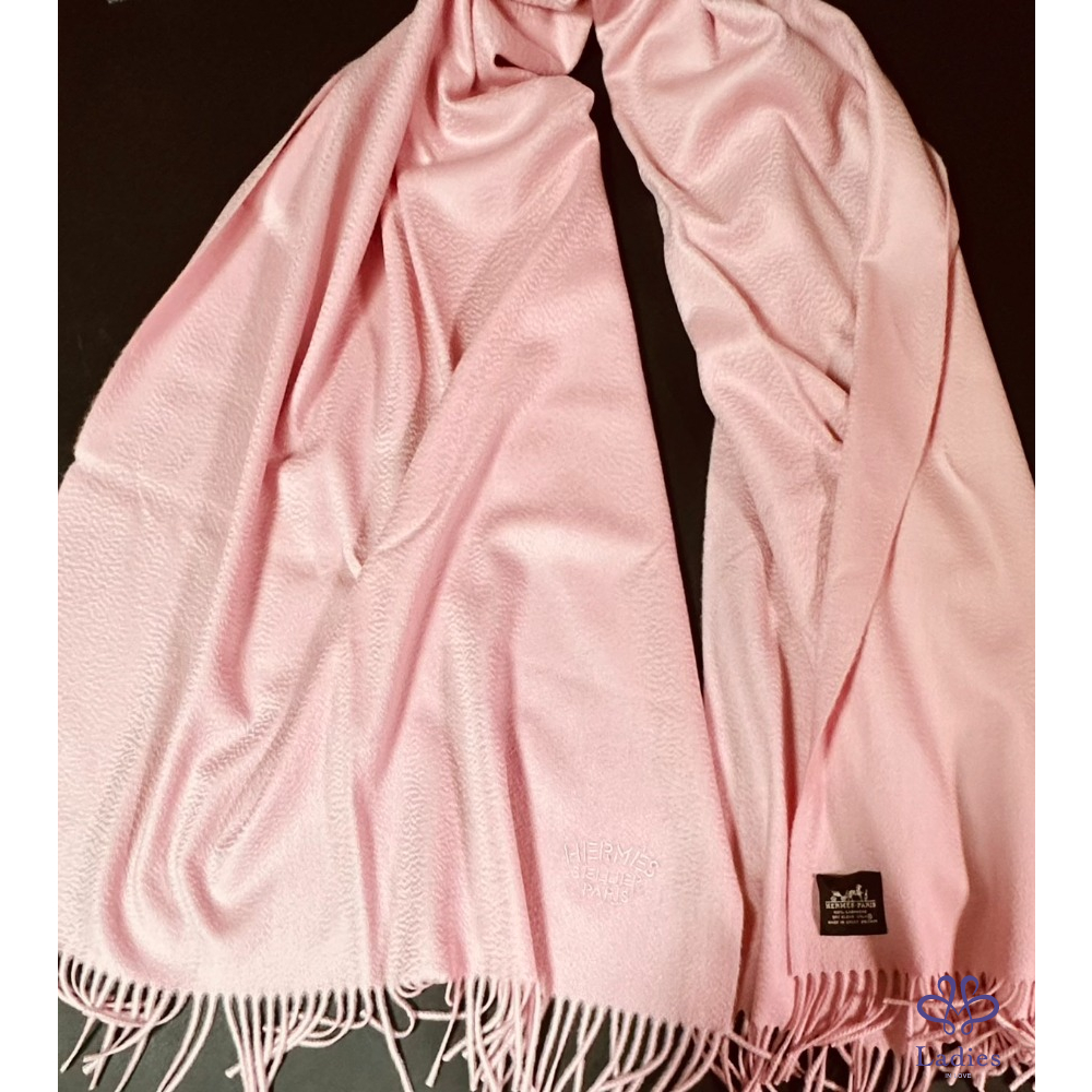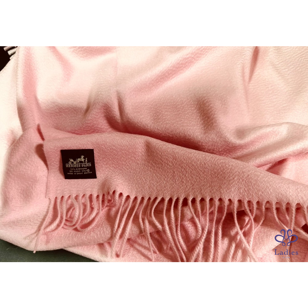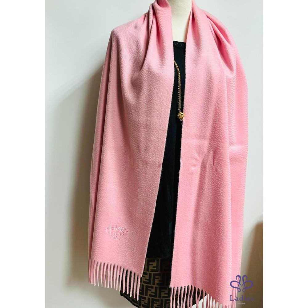 ~HERMES 附原廠盒 未使用品 粉色 100% CASHMERE 大披肩圍巾