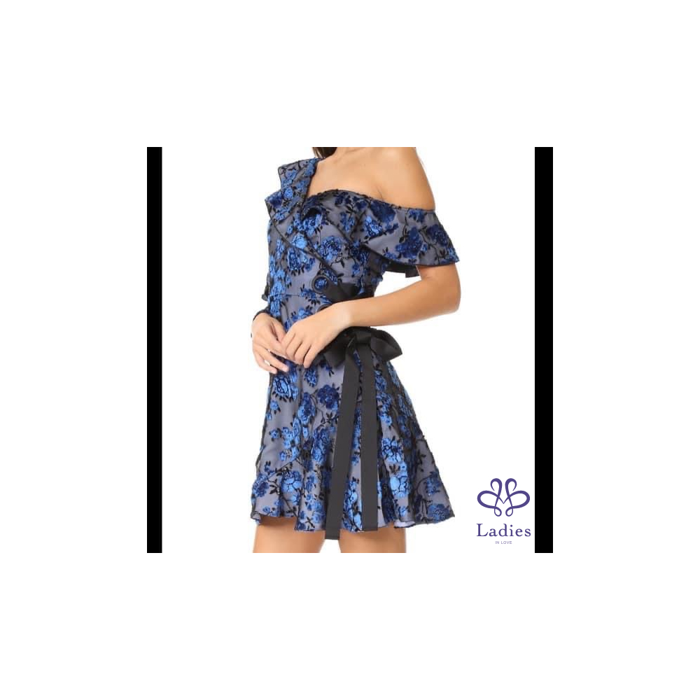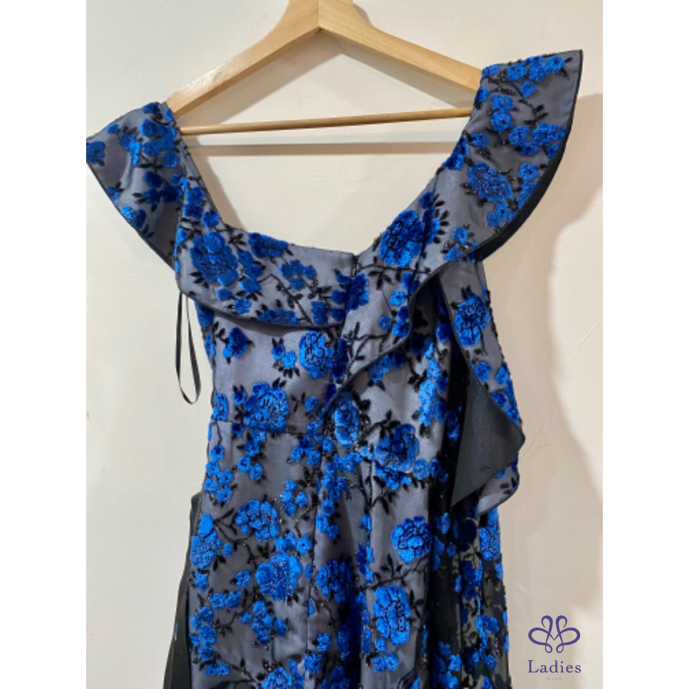 首頁 精品服飾 Self portrait 絨面花卉不規則斜肩紗袖洋裝