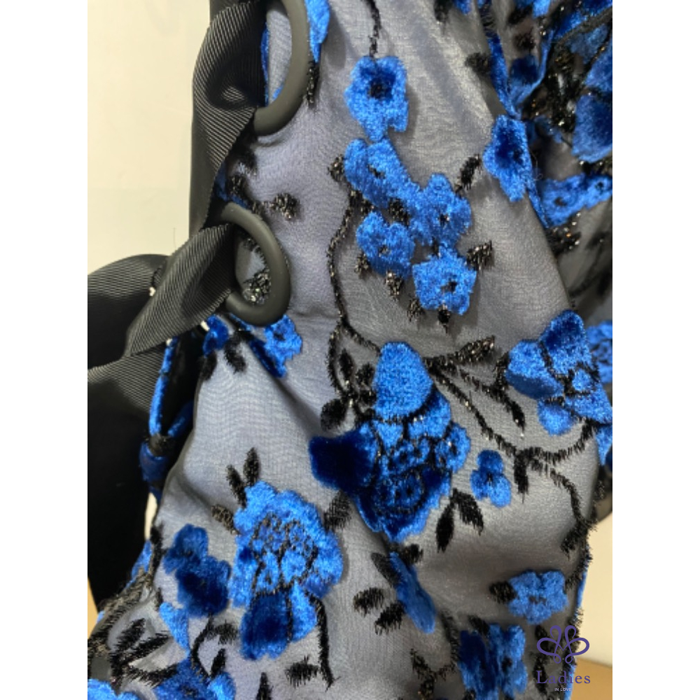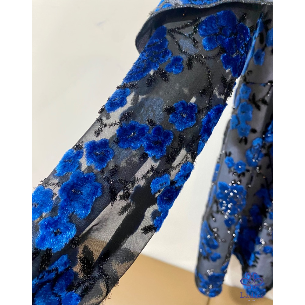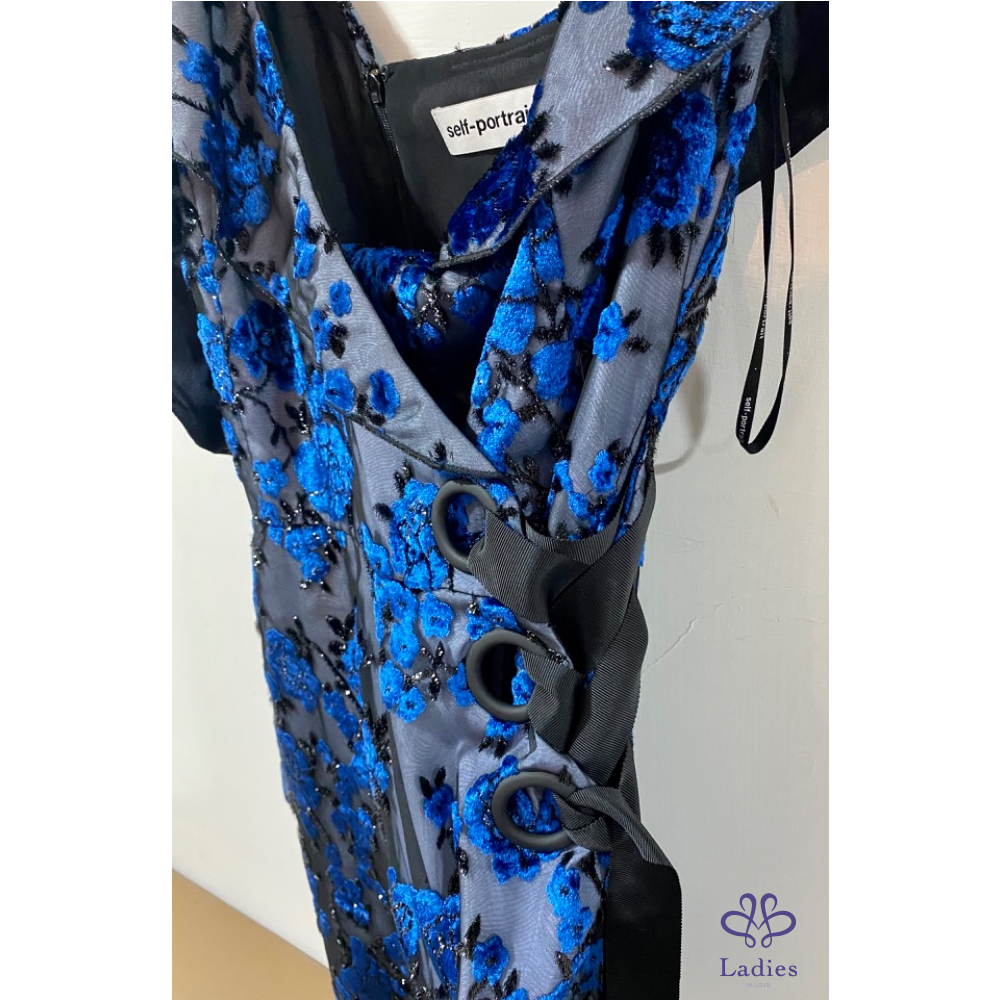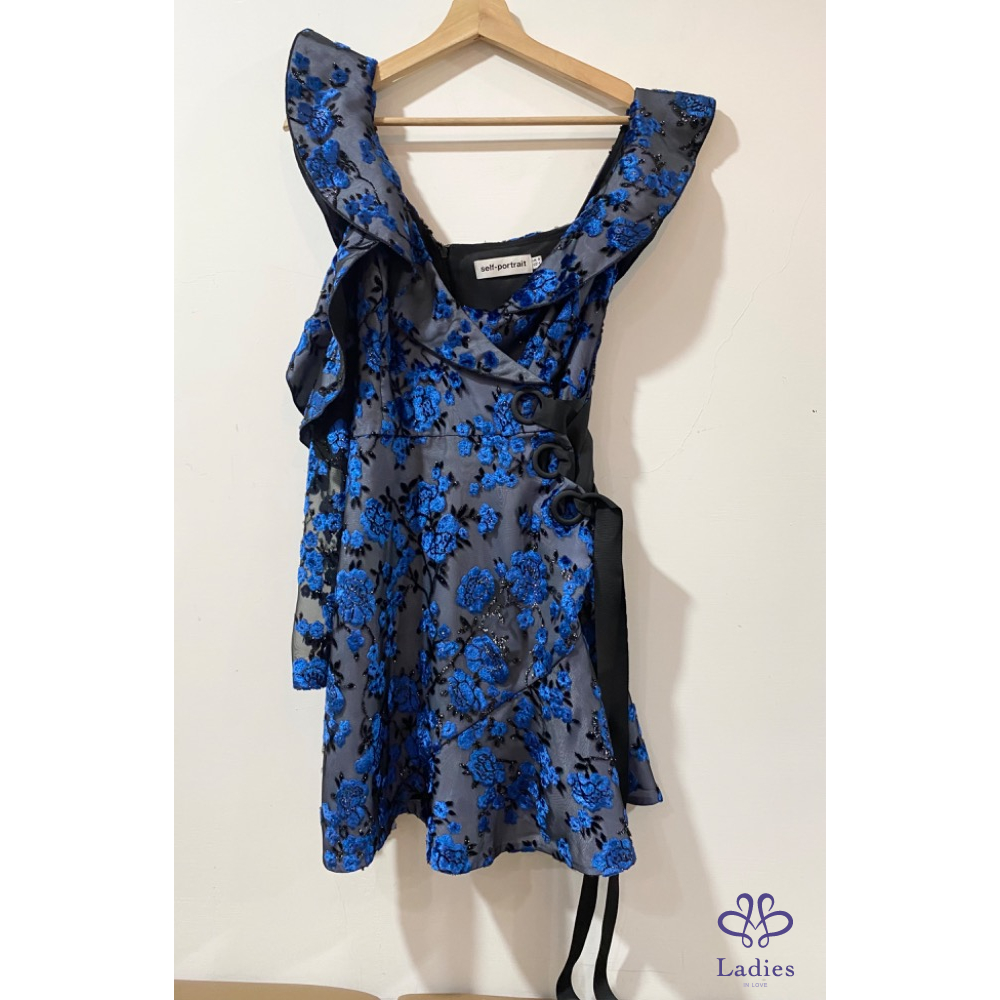 Self portrait 絨面花卉不規則斜肩紗袖洋裝