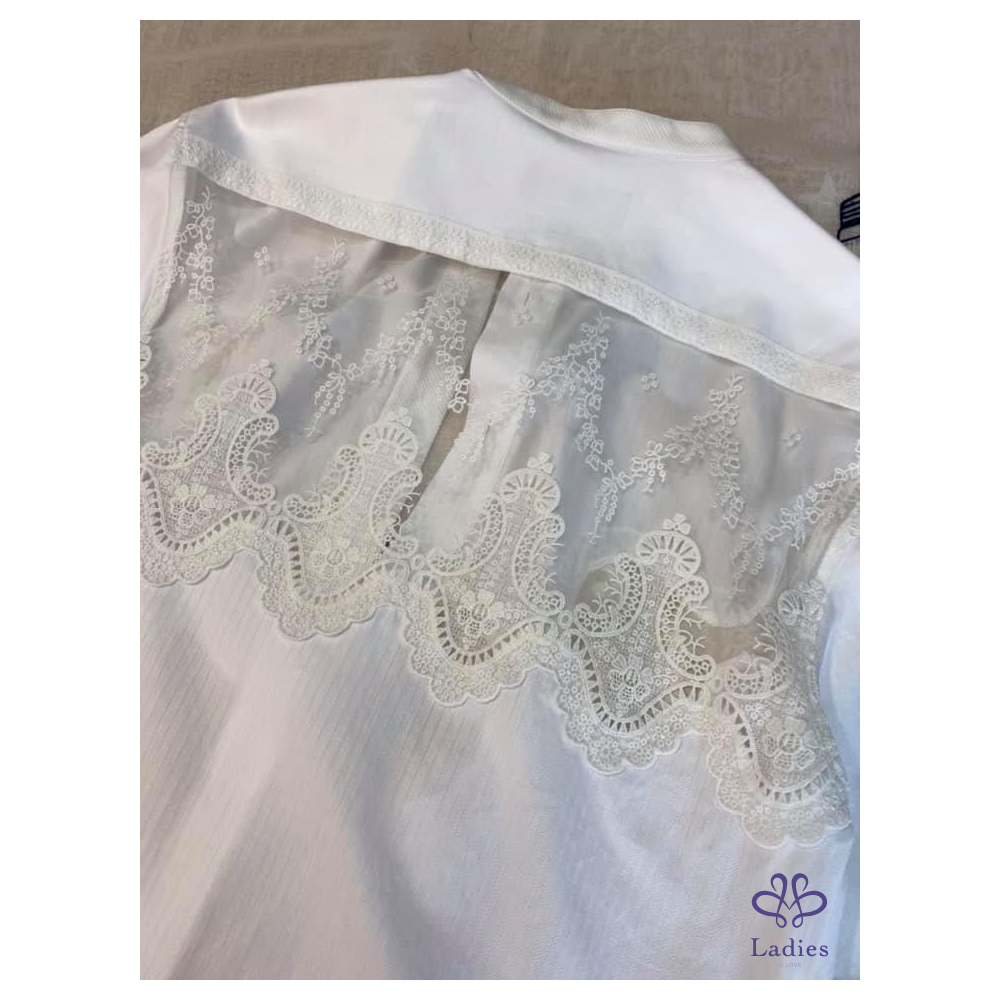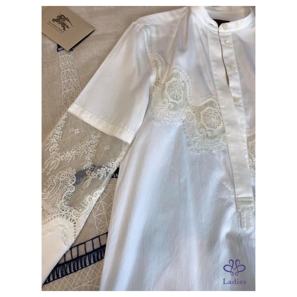 ????BURBERRY秀款黑標蕾絲花邊棉質襯衫式連衣裙