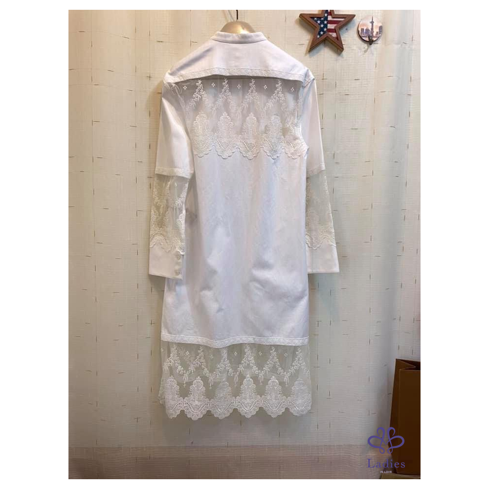 ????介紹:棉100% 直版剪裁襯衫式連衣裙,採用多種織法悉心匠製打造,搭配扇形薄紗蕾絲飾片。側邊高開衩設計,營造飄逸廓形。Burberry頂級黑標走秀款,美到像極了愛情。