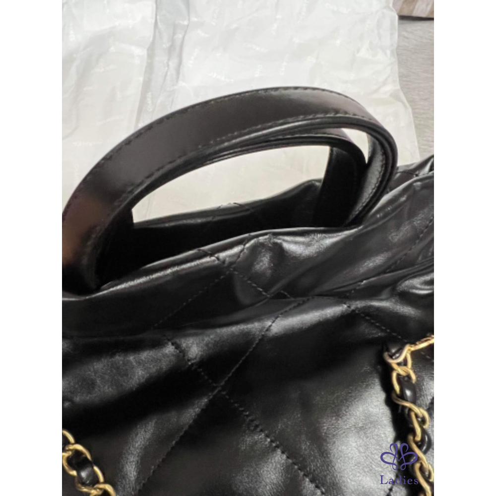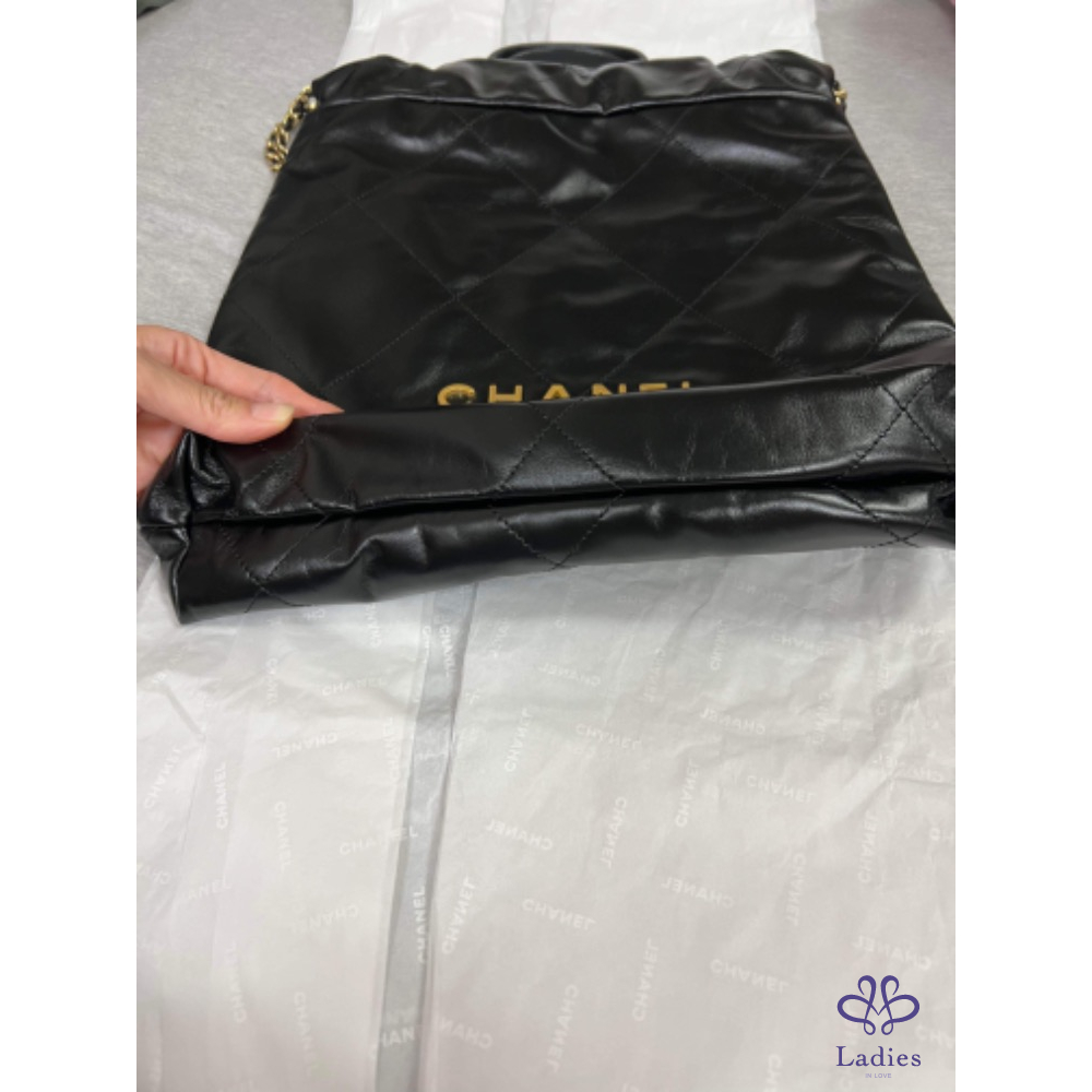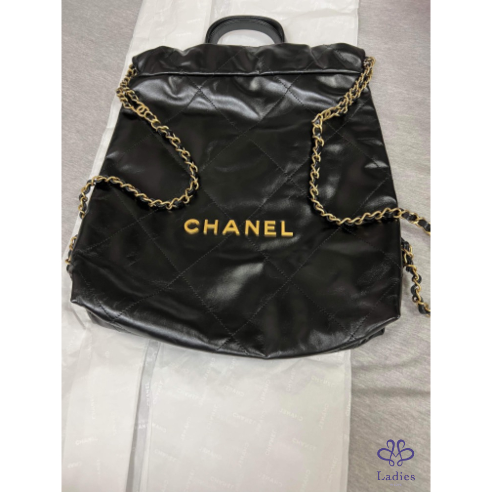 黑色小牛皮搭配金釦,22包可手提與後背包使用,全新品沒用過,專櫃購入約19萬,現已漲到21萬。