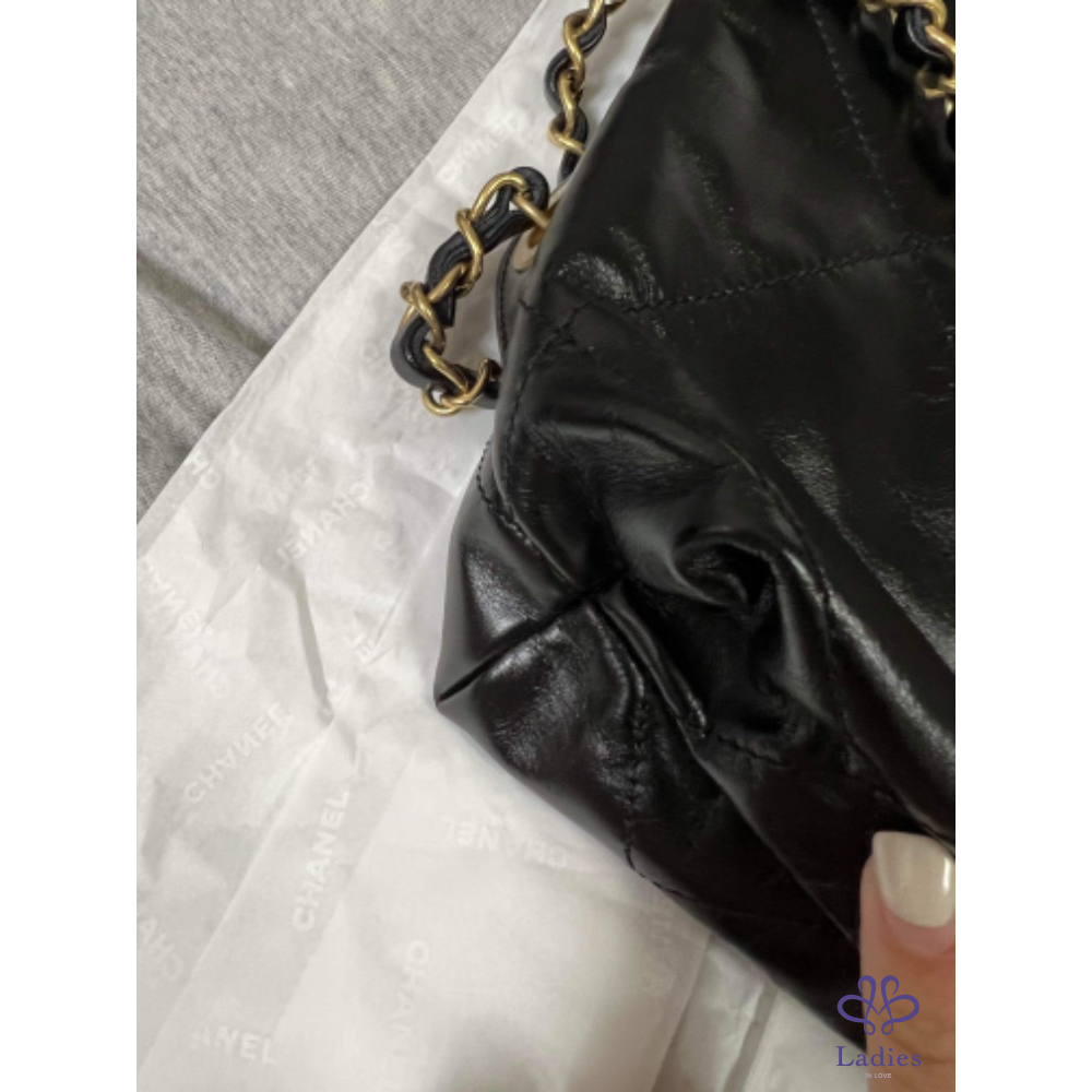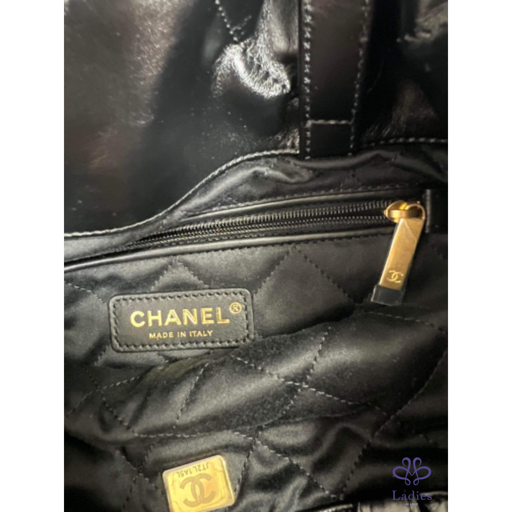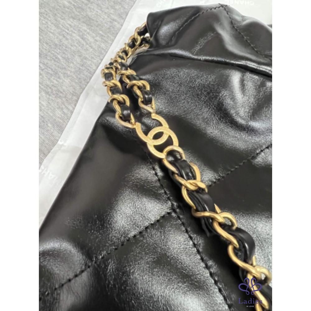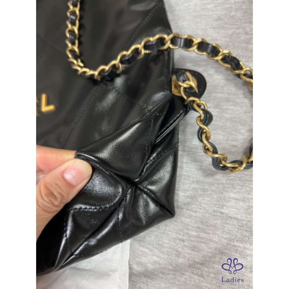 黑色小牛皮搭配金釦,22包可手提與後背包使用,全新品沒用過,專櫃購入約19萬,現已漲到21萬。