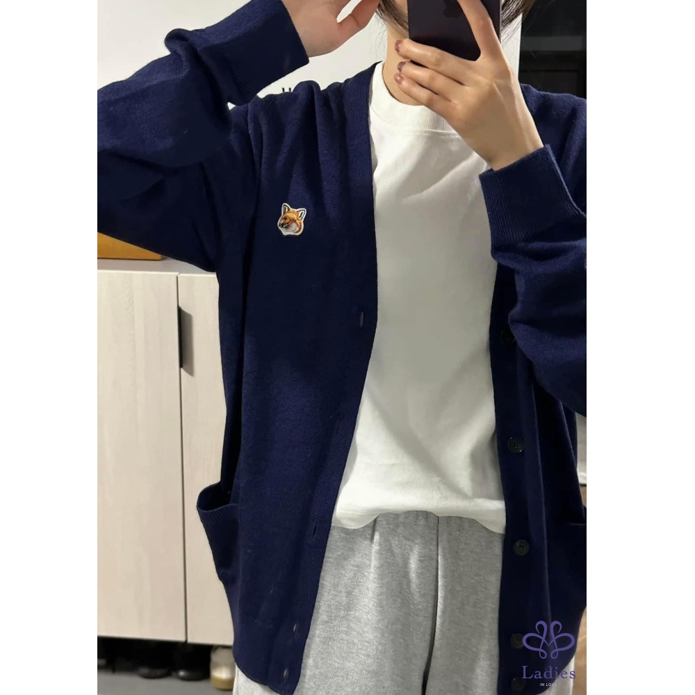 全新 Maison kitsuné 可愛刺繡狐狸深藍色羊毛外套