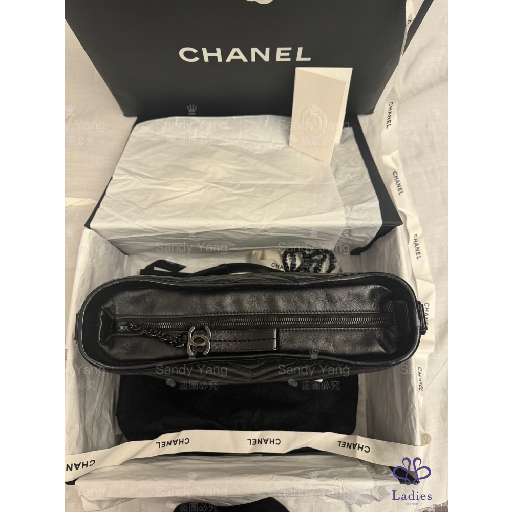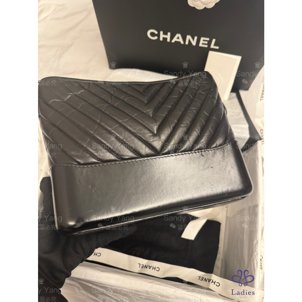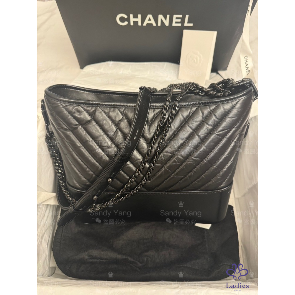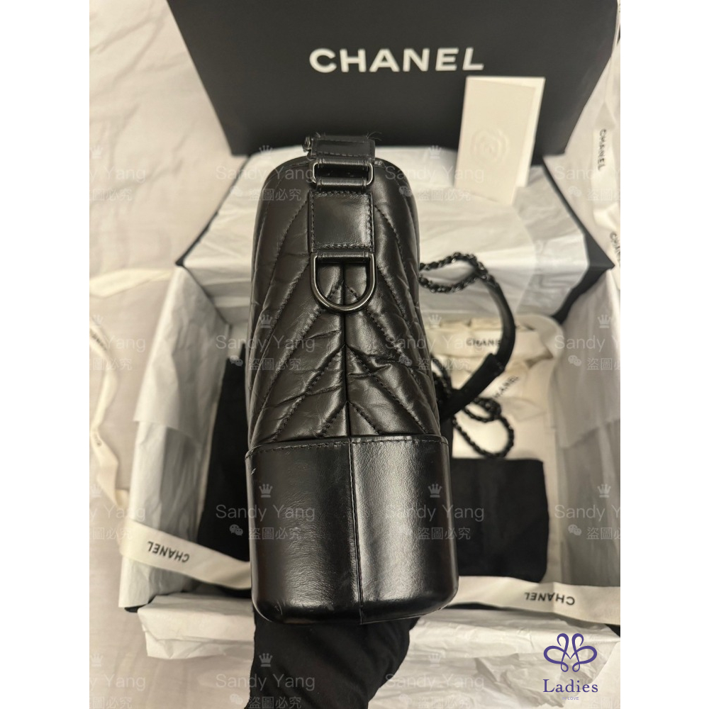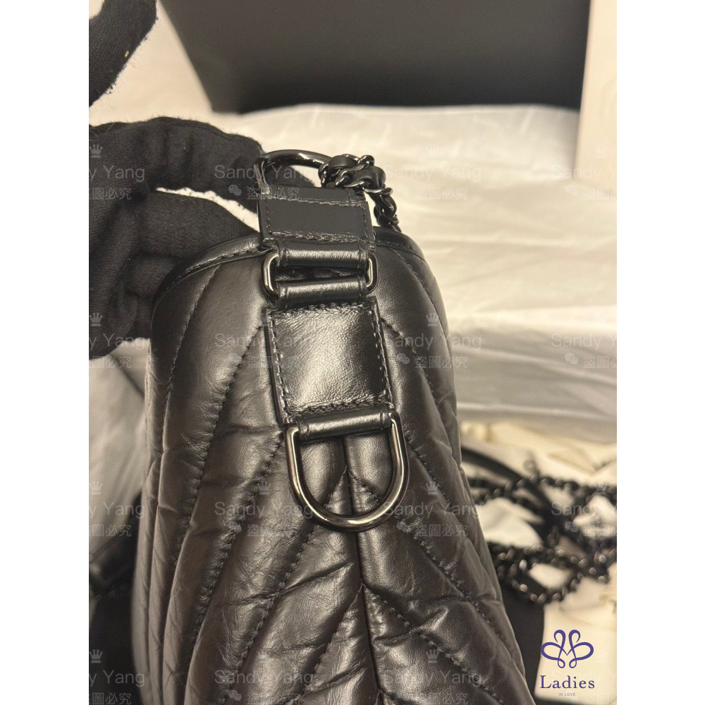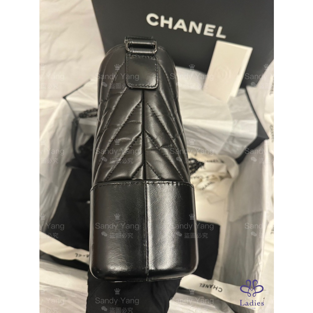 香奈兒 so black 中號流浪包 山形紋 黑金 28開 95新大全配