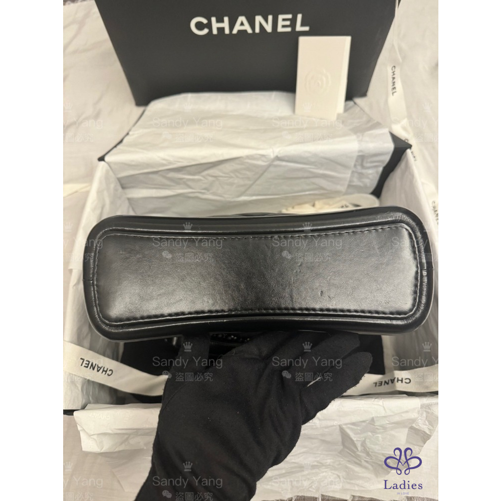首頁 精品包包 香奈兒 so black 中號流浪包 山形紋 黑金 28開 95新大全配