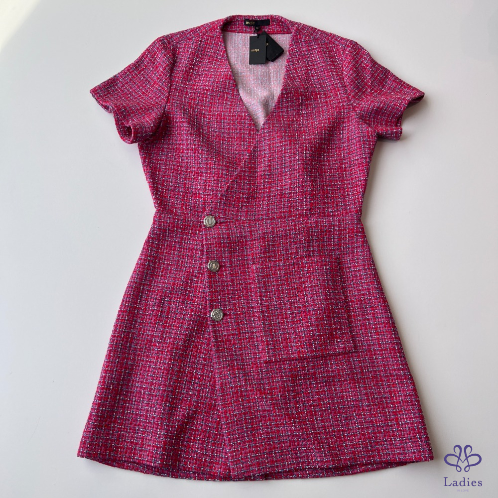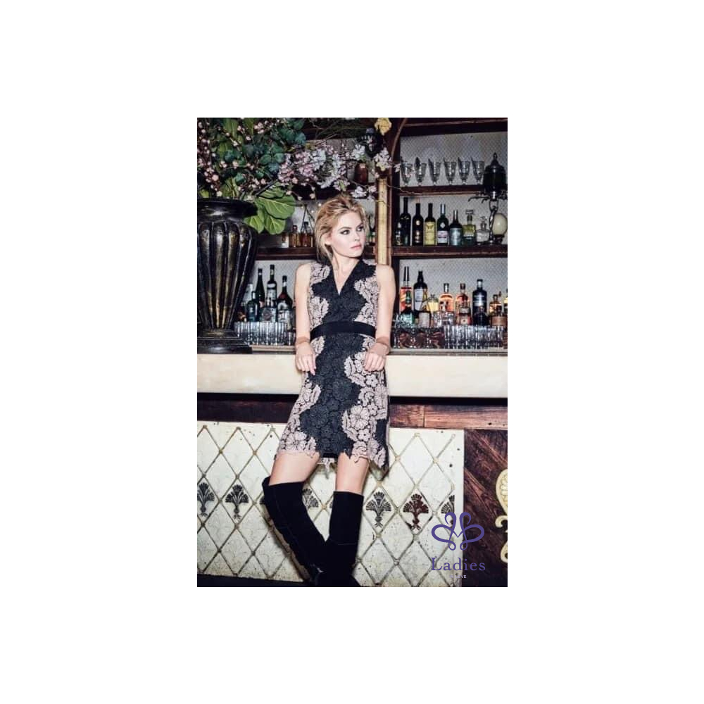 首頁 精品服飾 Alice + Olivia 粉黑 V領簍空蕾絲修身洋裝
