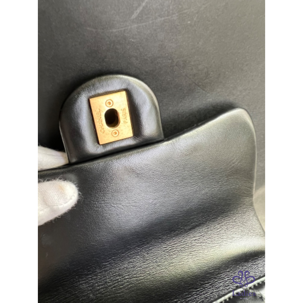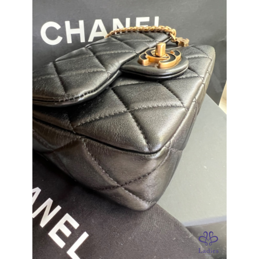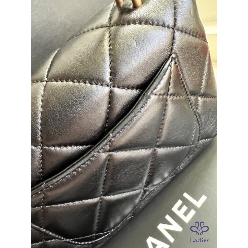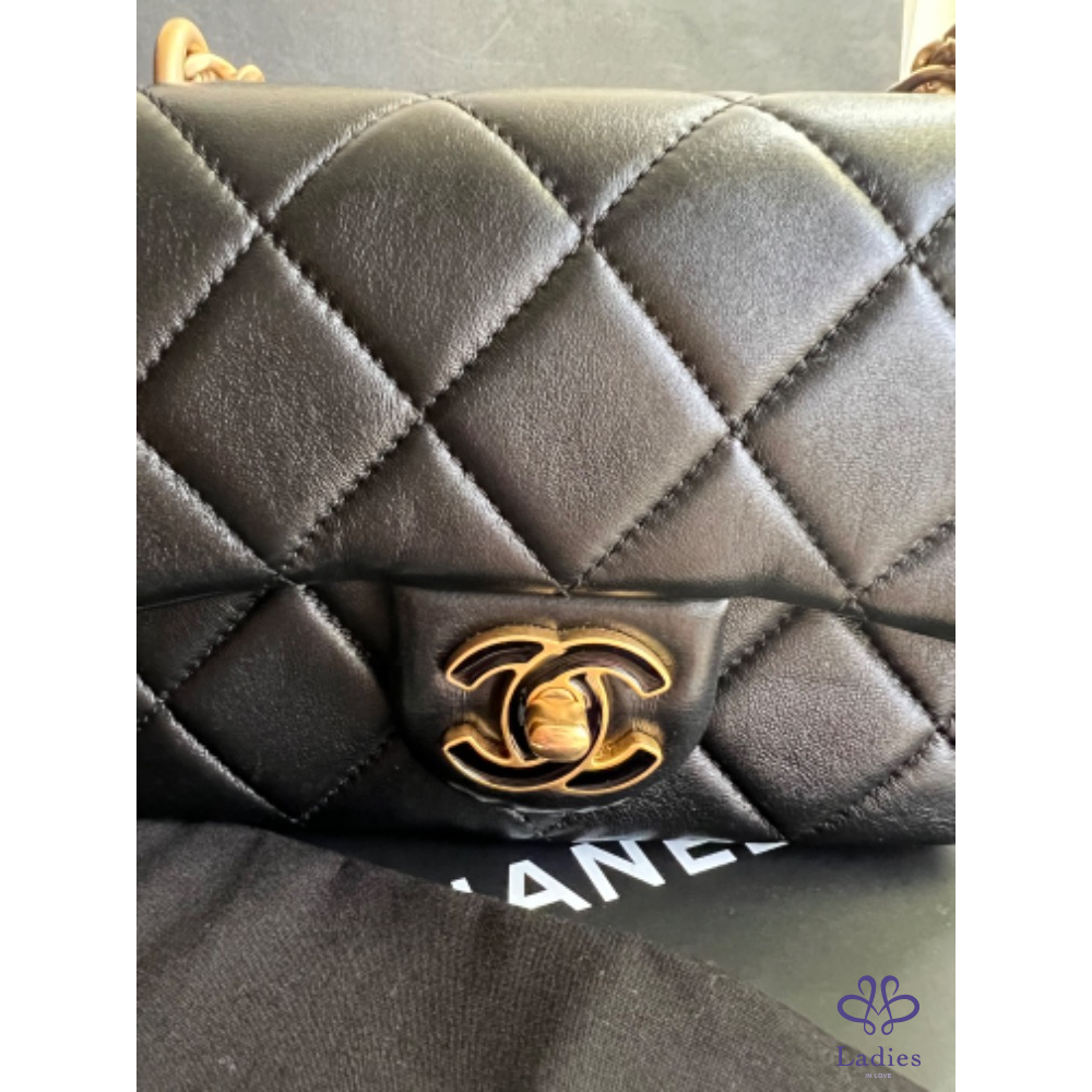 85新CHANEL經典黑金珐瑯轉釦垂吊cc logo方胖羊皮口蓋包