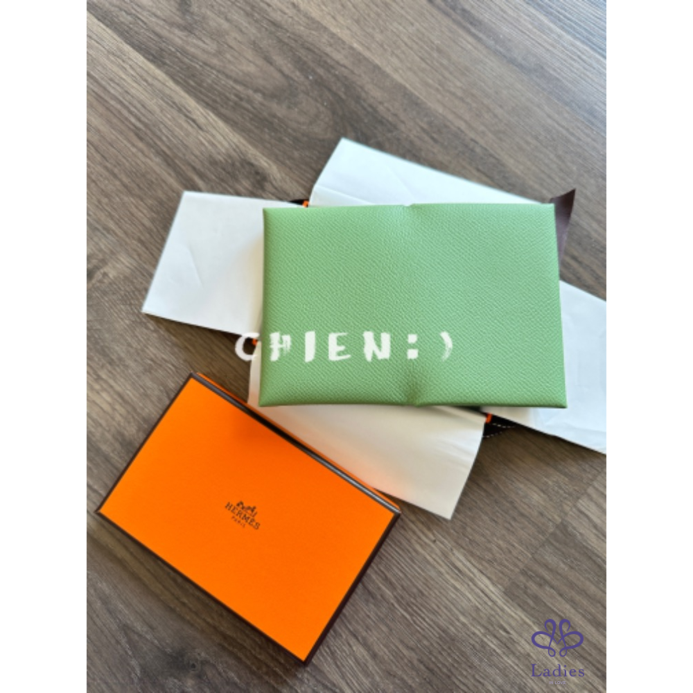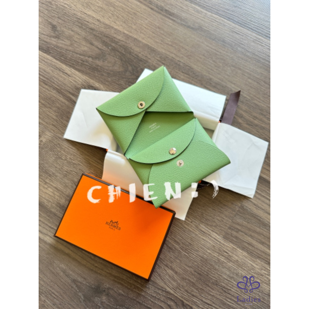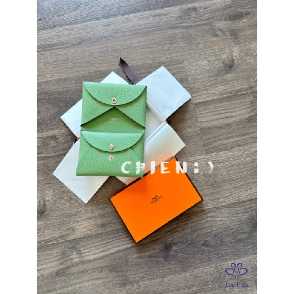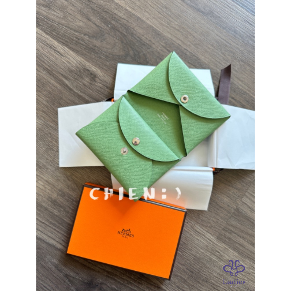 全新HERMÈS Porte-cartes Calvi duo牛油果綠 卡夾錢包