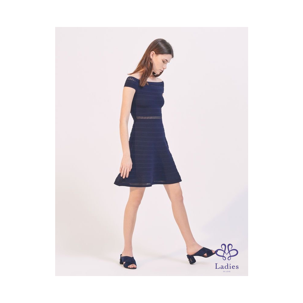 首頁 精品服飾 SANDRO 船型領 瘦瘦彈性針織鏤空洋裝