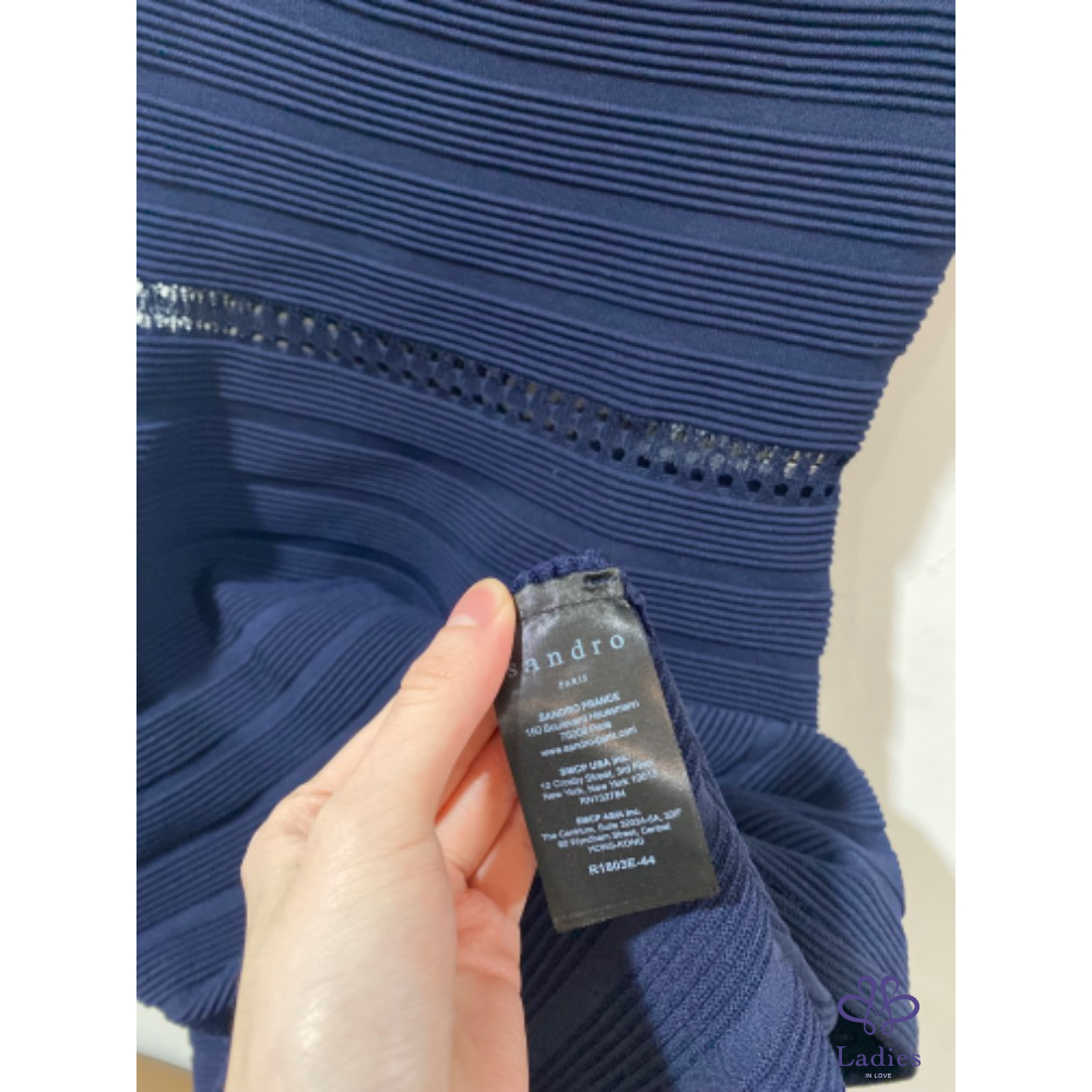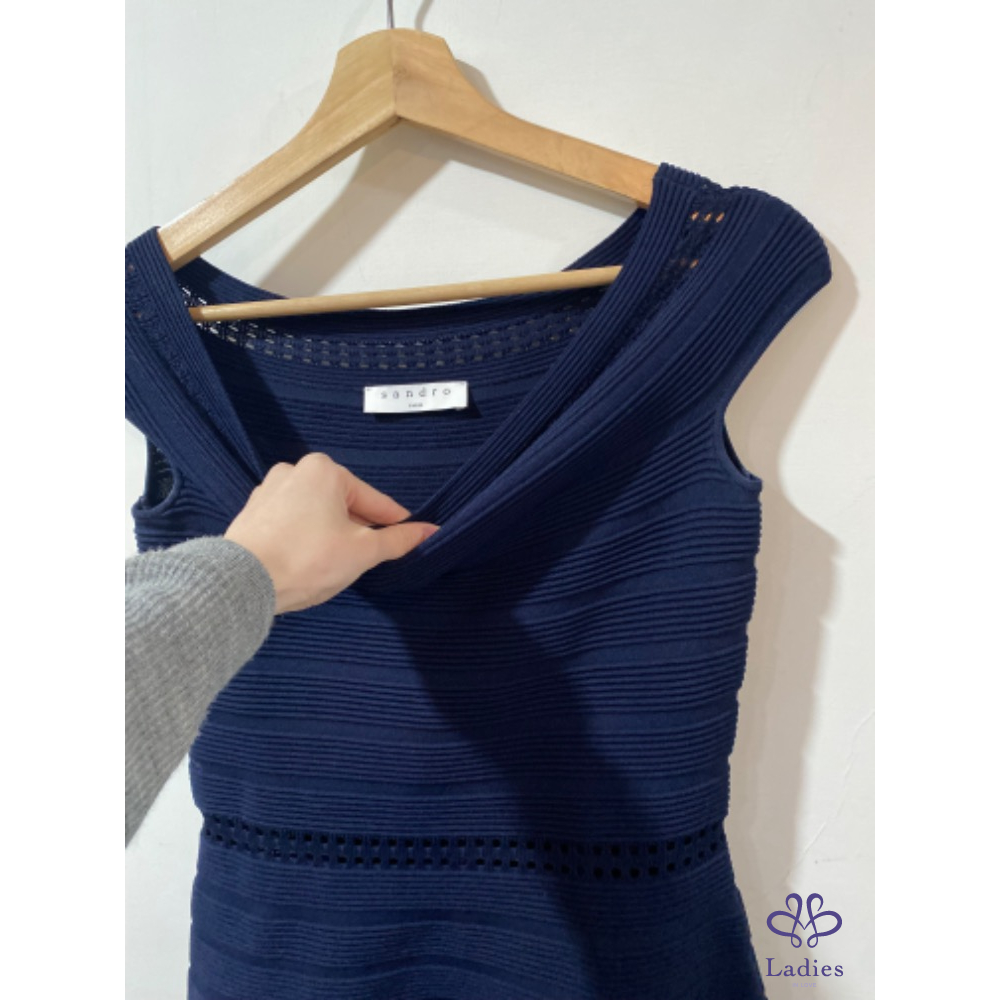 SANDRO 船型領 瘦瘦彈性針織鏤空洋裝