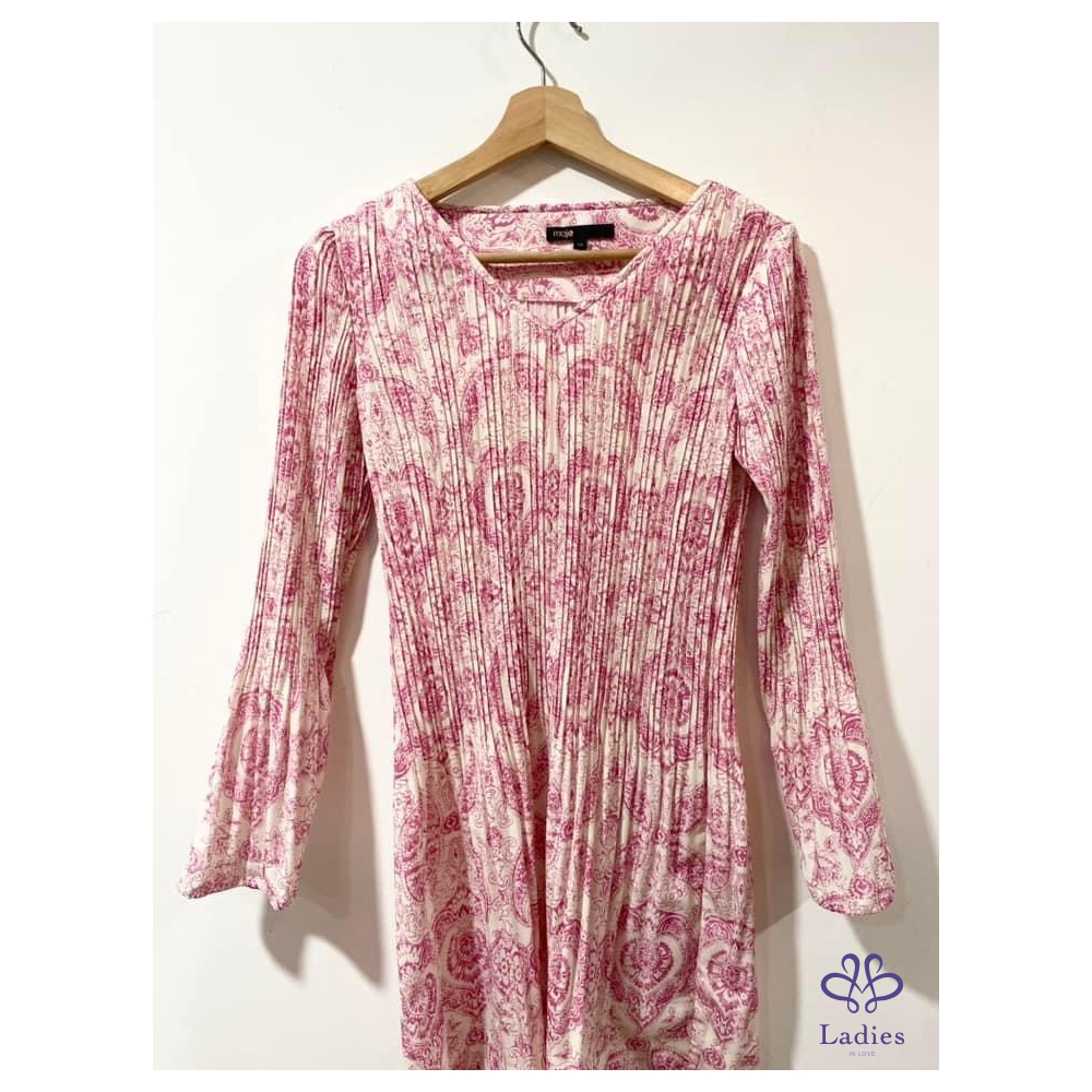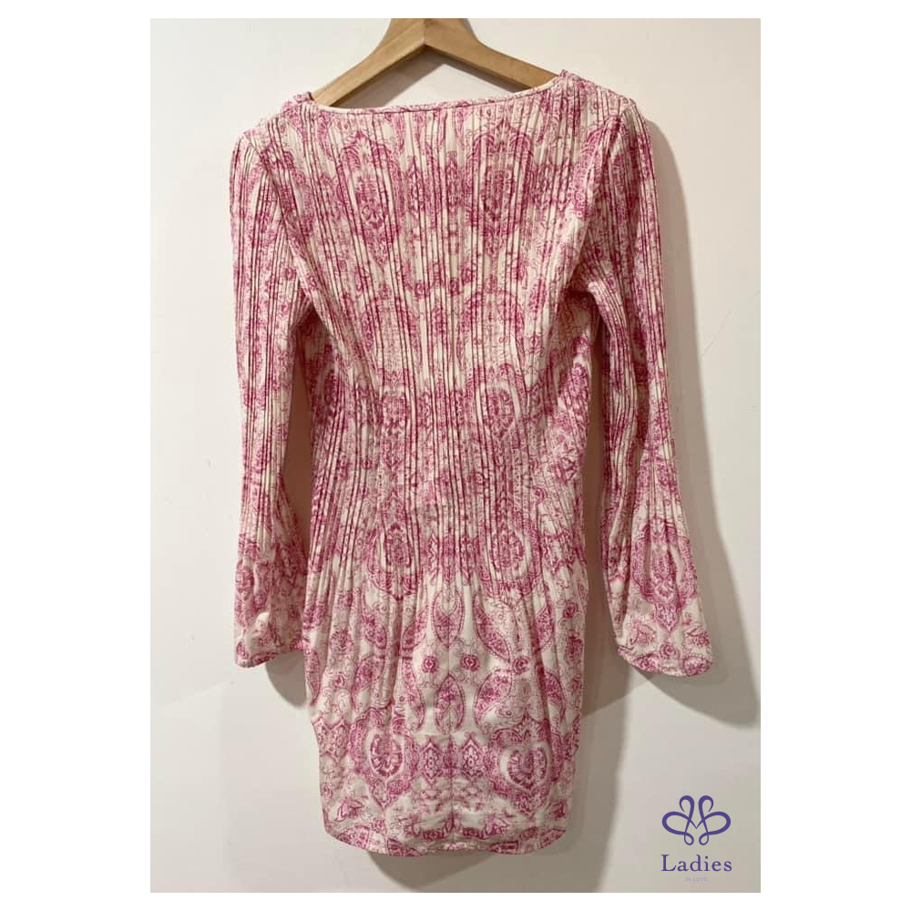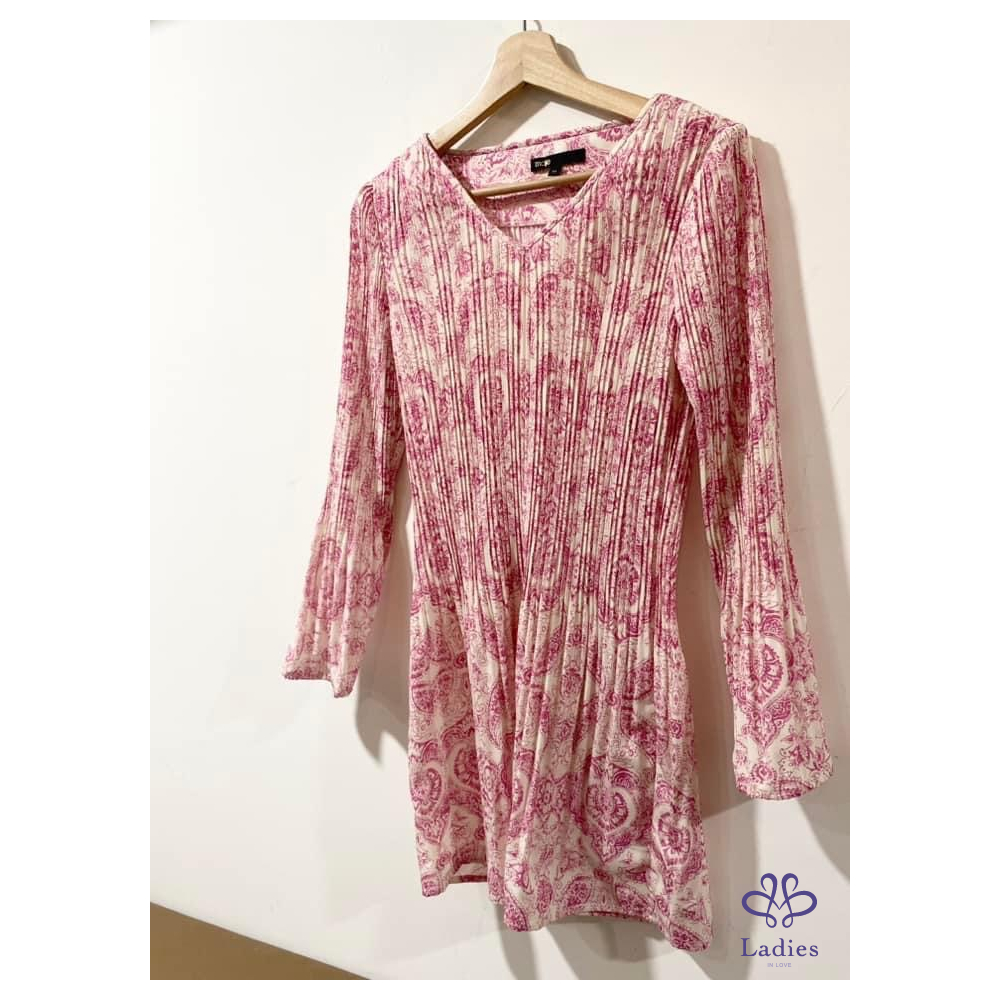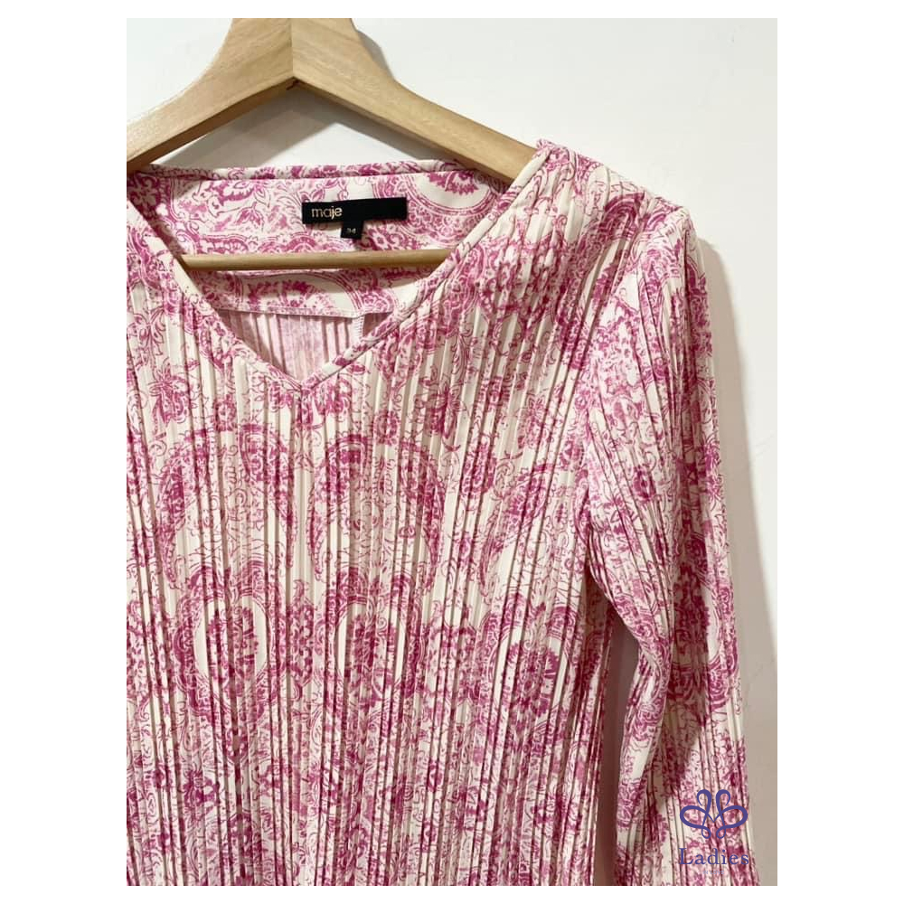 首頁 精品服飾 MAJE 顯白粉 佩斯利花紋 彈性褶皺洋裝