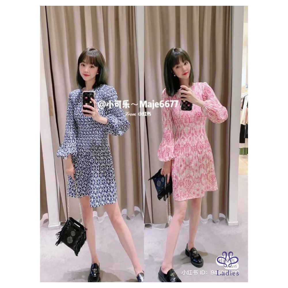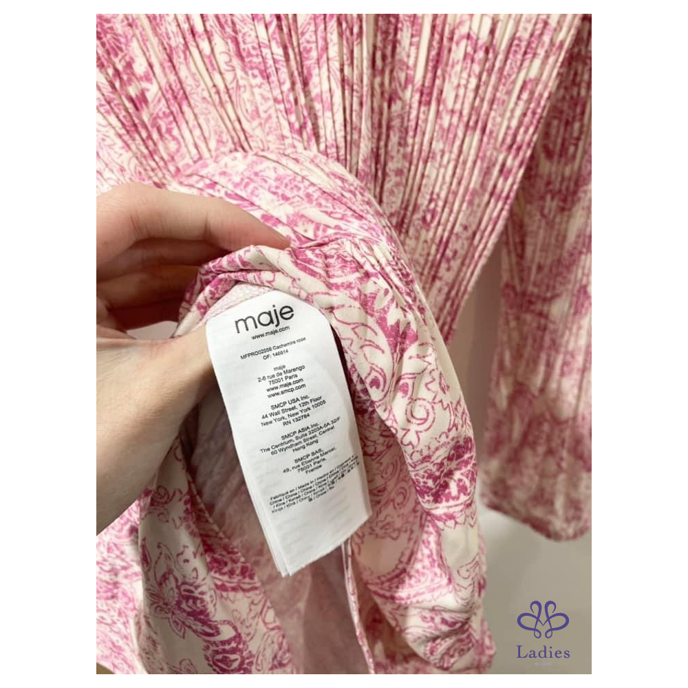 MAJE 顯白粉 佩斯利花紋 彈性褶皺洋裝